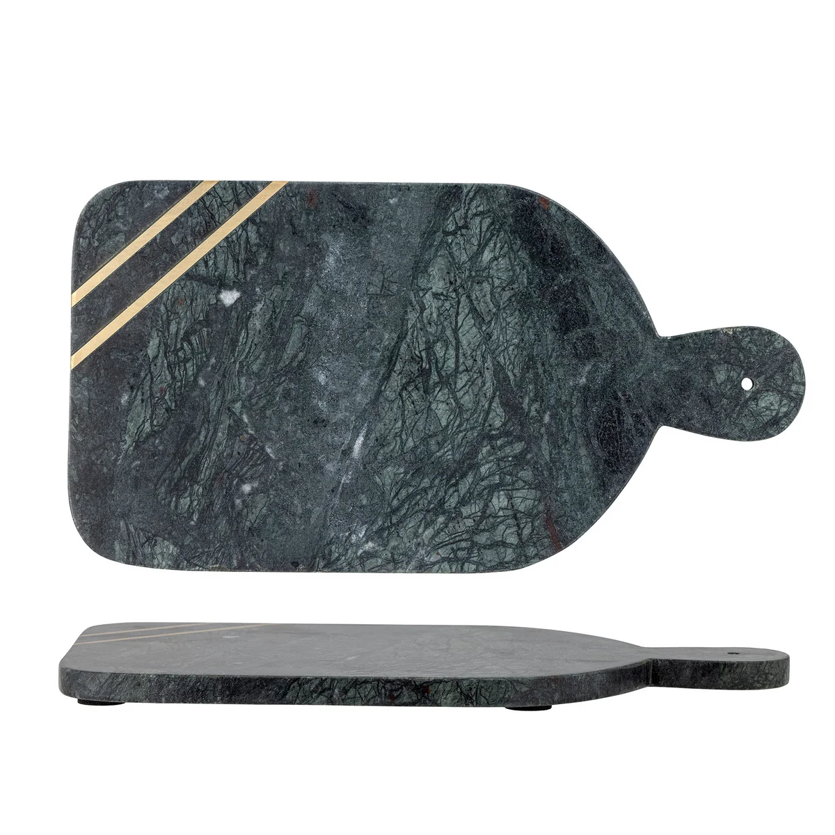 The Adalin cutting board from Bloomingville is made of marble in shades of green and black and has an inlay of gold-colored metal. The beauty of natural stone is that no two pieces are alike. Each one is a unique work of art, shaped over thousands of years by Mother Nature through heat, pressure and many different minerals and organic materials. It is the settling of these minerals in the stone that creates the stunning play of colors, patterns, textures and grains of each item.