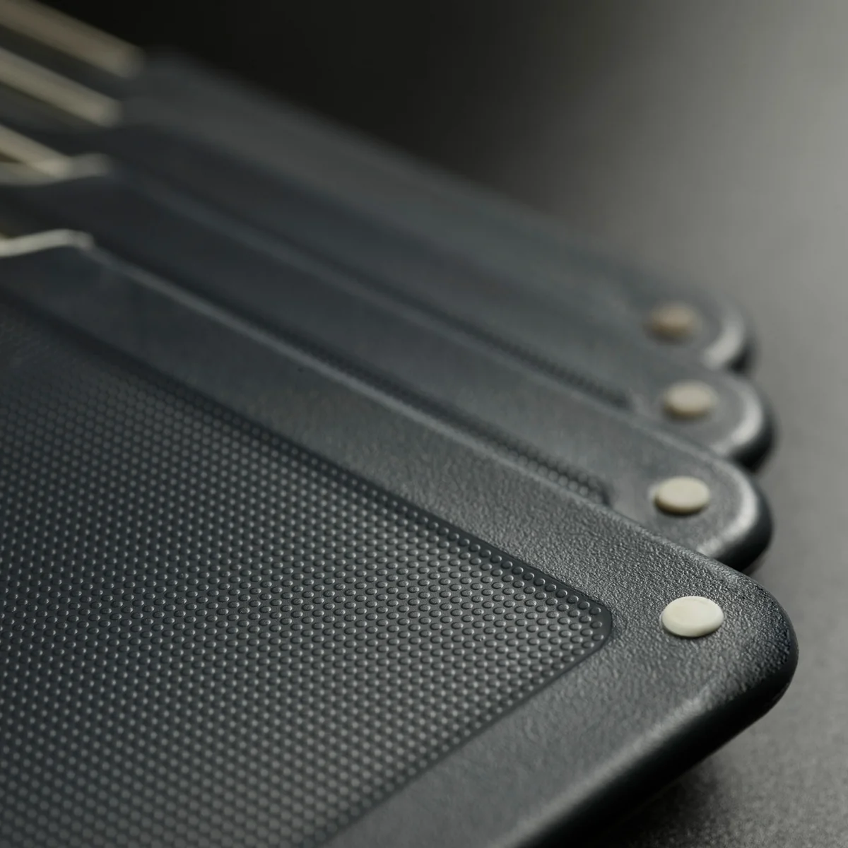 The Folio Steel chopping boards from Joseph Joseph help keep order in the kitchen. Four cutting boards in different colours are stored in a narrow stainless steel housing and can be easily removed by a handle. The housing is resistant to fingerprints and the slightly reflective surface makes it look particularly high-quality. Non-slip feet on the floor ensure a safe stand on the work surface.
