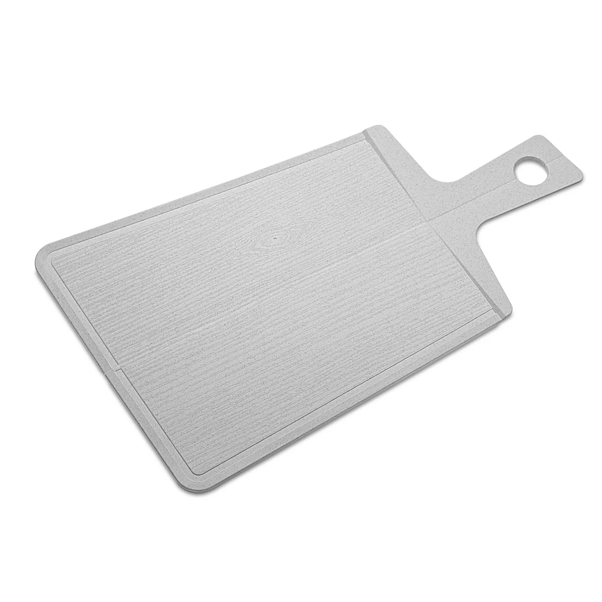 The Snap 2. 0 cutting board ( Organic ) Koziol has a well thought-out design thanks to the folding function. The cutting board can be angled by the central fold and the cut food slides easily and safely into the pot or bowl. In addition, the board has a large handle, an all-round juice groove and a surface that is gentle on the blade.