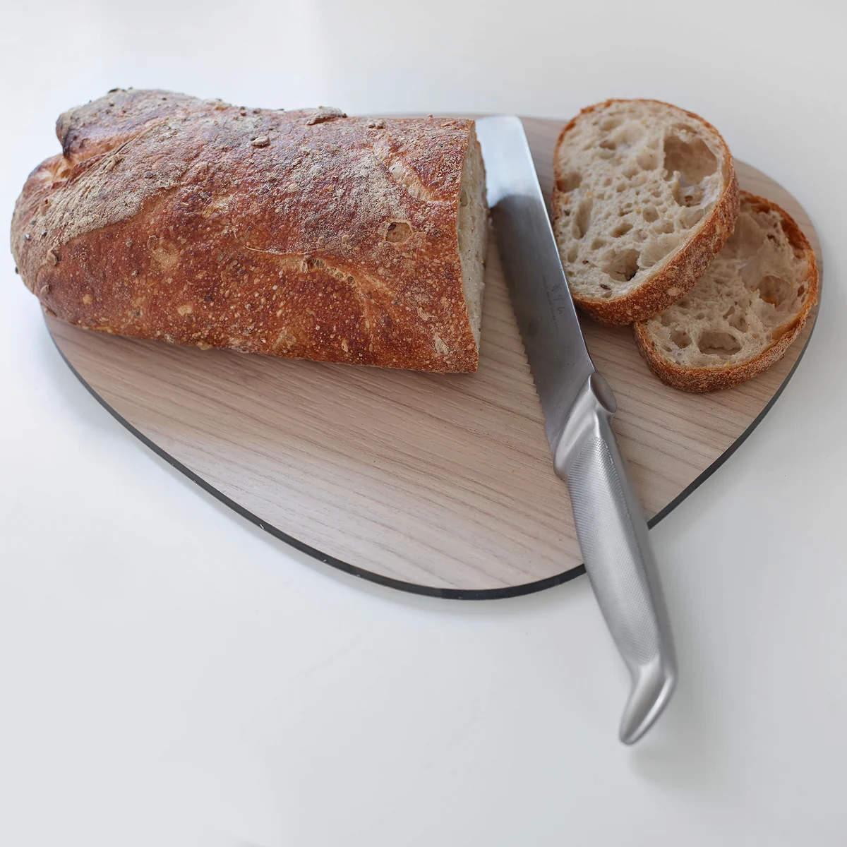 The Cut&Serve chopping board by Lind DNA is characterised by an organic shape and beautiful curves that make the board a real eye-catcher in the kitchen and dining room. The decorative board is suitable to chop ingredients to cook or bake with as well as to cut bread. It can then be presented as a serving board on the dining room table. It is great as a base for tapas, sausage, cheese and much more.
