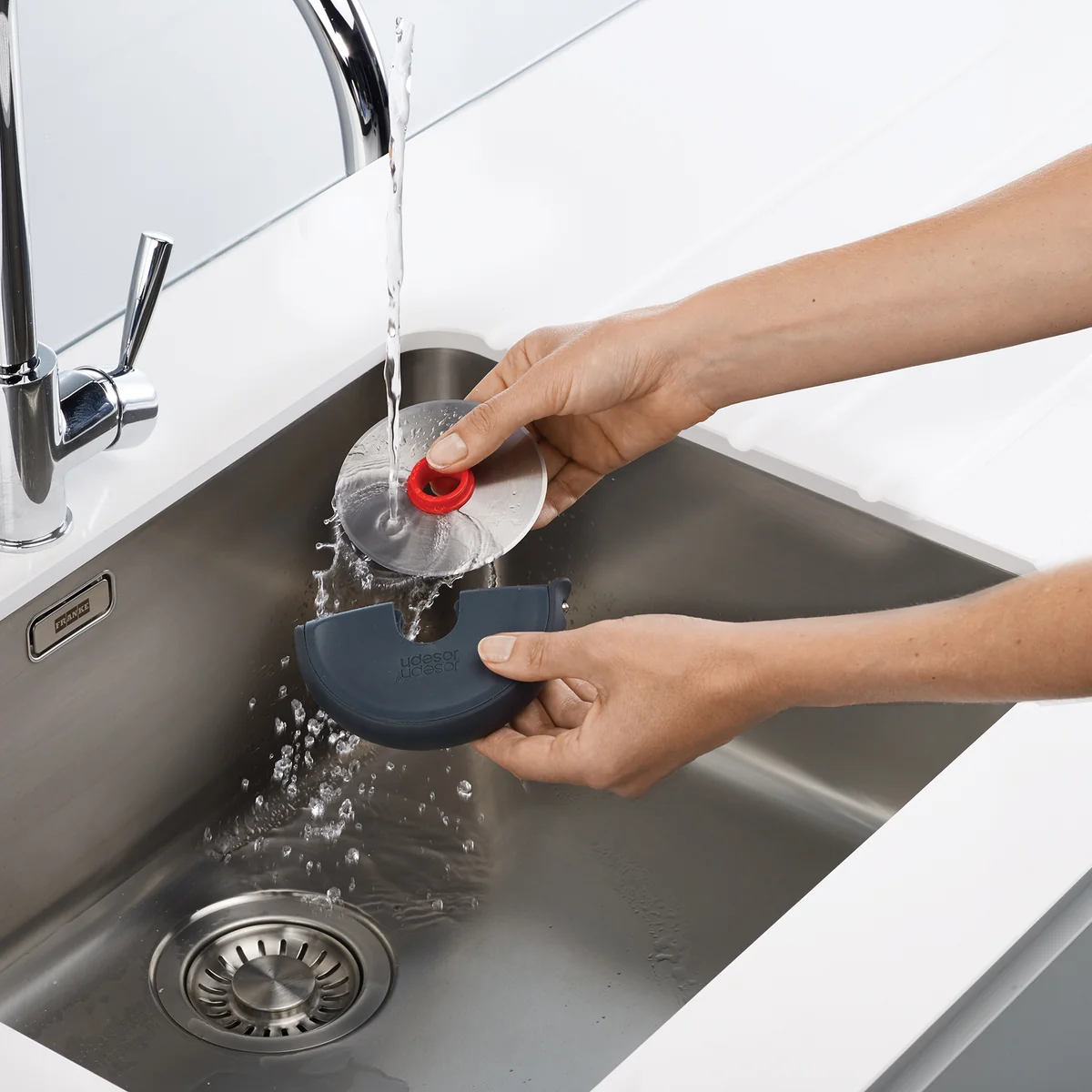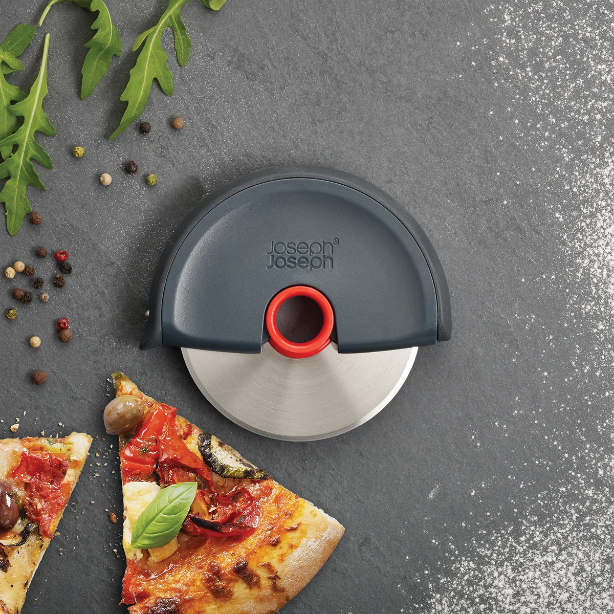 Whether Pizza, pastry or dough, the Disc Pizza wheel by Joseph Joseph is an essential tool to have in any kitchen. The ergonomic design includes a clever grip that can be changed into a safe blade guard for storing. The stainless steel blade comes in a clever housing, from which it can be easily removed for cleaning.