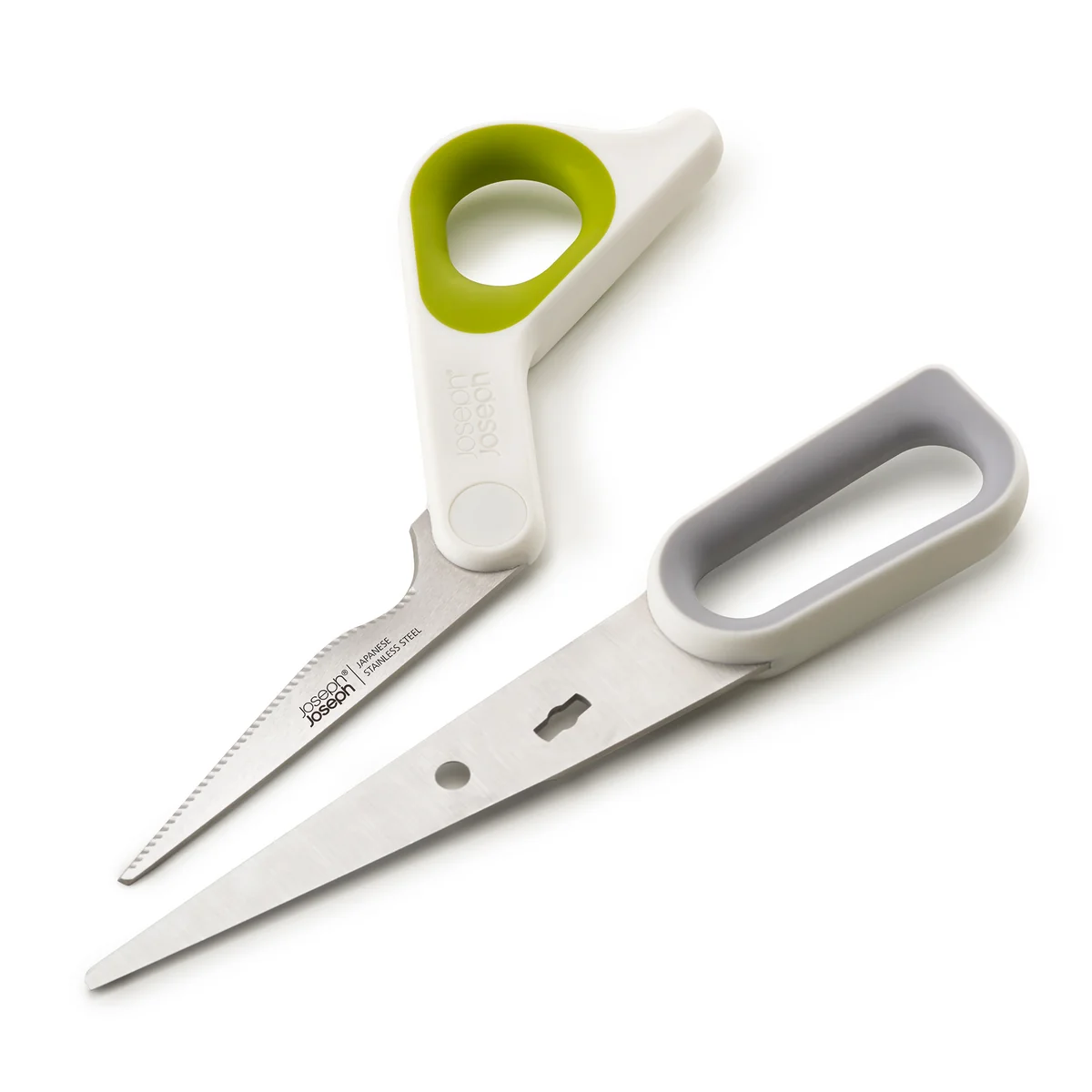 The Powergrip kitchen shears from Joseph Joseph are ideal for cutting and preparing food in the kitchen. With an integrated thumb handle, the scissors can also be used with both hands, which allows more force to be applied. The scissors are also ideal for cutting chicken bones or wooden skewers.