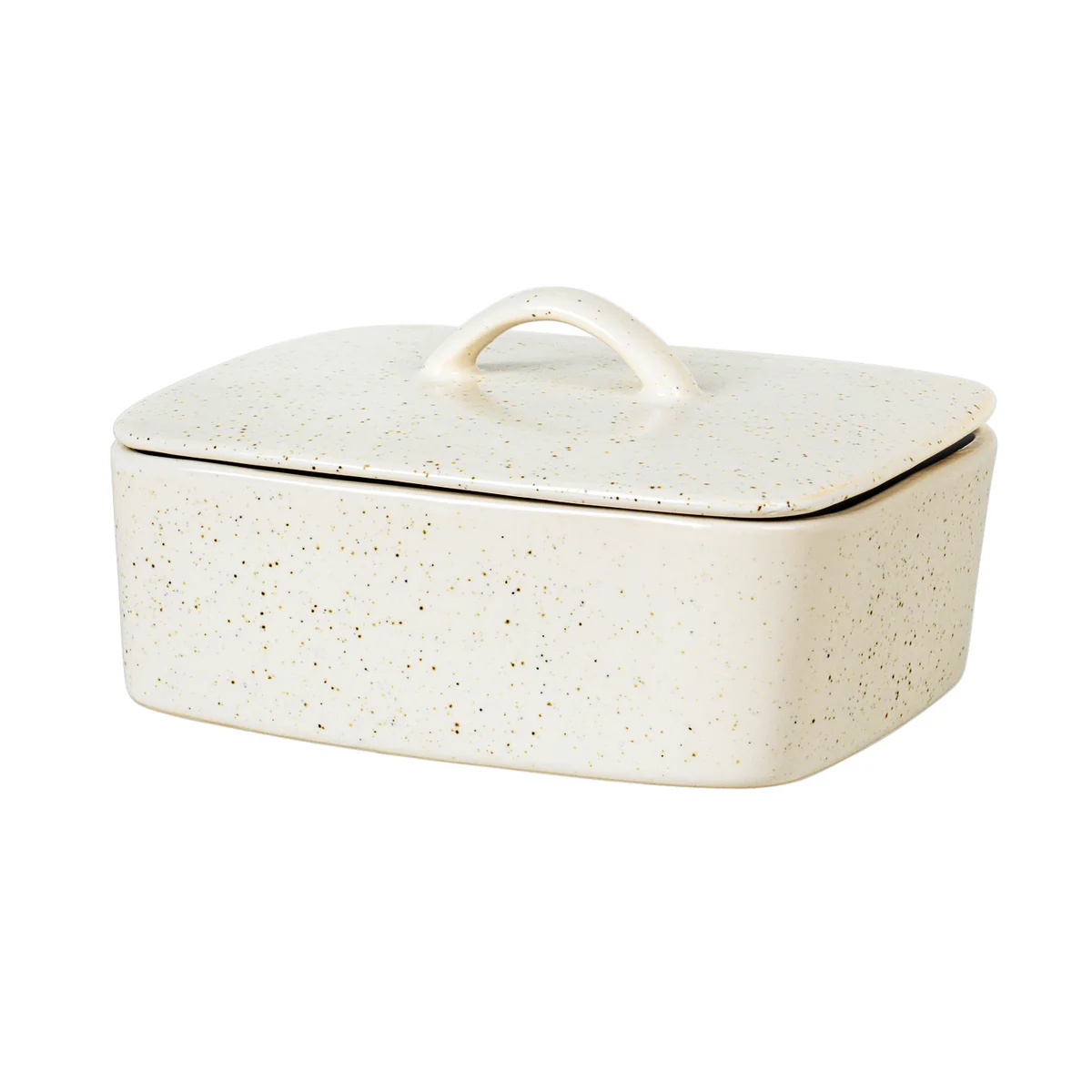 Speckled Butter Dish with Lid in Vanilla Color