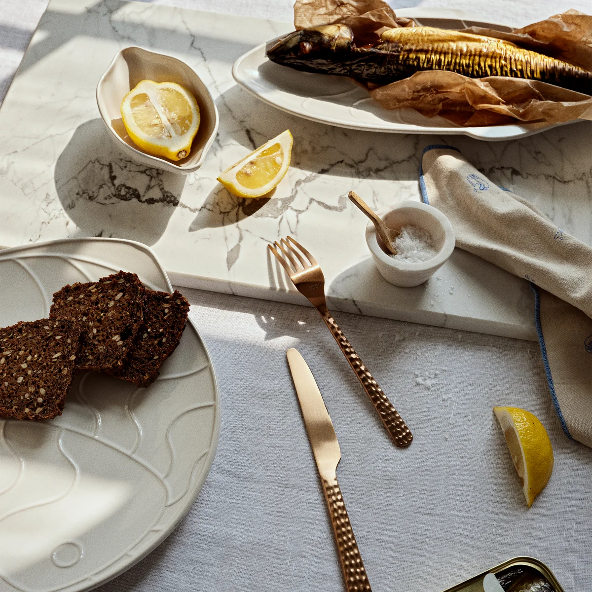 The Pesce Tableware from Broste Copenhagen brings the sea air, the sound and smell of summer into the living room. Handcrafted from glazed stoneware, the dinnerware features the silhouette of a fish. With the rounded shape, the plates bring a charming touch to the set dining table. The plates can also be used for decorative purposes. On the dining table, they are ideal for serving cookies, lemon slices or desserts. The Pesce Bowls are available in different designs.