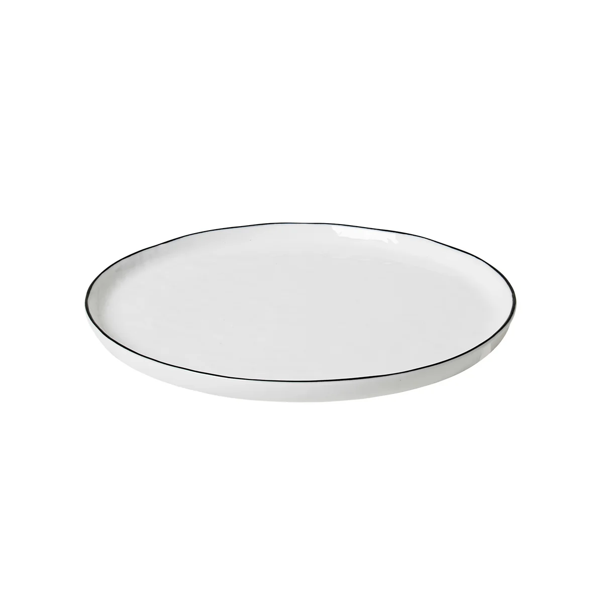The Salt plate from Broste Copenhagen is part of the collection of the same name, which is characterized by classic shapes with elegance and sharpness. The white glaze is complemented by hand-painted black rims. The glaze acquires its unmistakable texture and color in the firing process, making each piece of tableware unique.