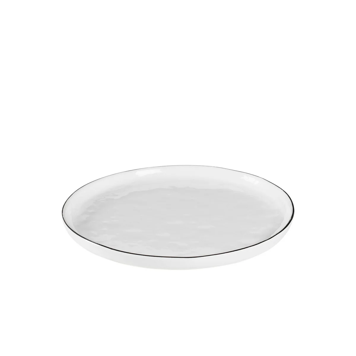 The Salt plate from Broste Copenhagen is part of the collection of the same name, which is characterized by classic shapes with elegance and sharpness. The white glaze is complemented by hand-painted black rims. The glaze acquires its unmistakable texture and color in the firing process, making each piece of tableware unique.