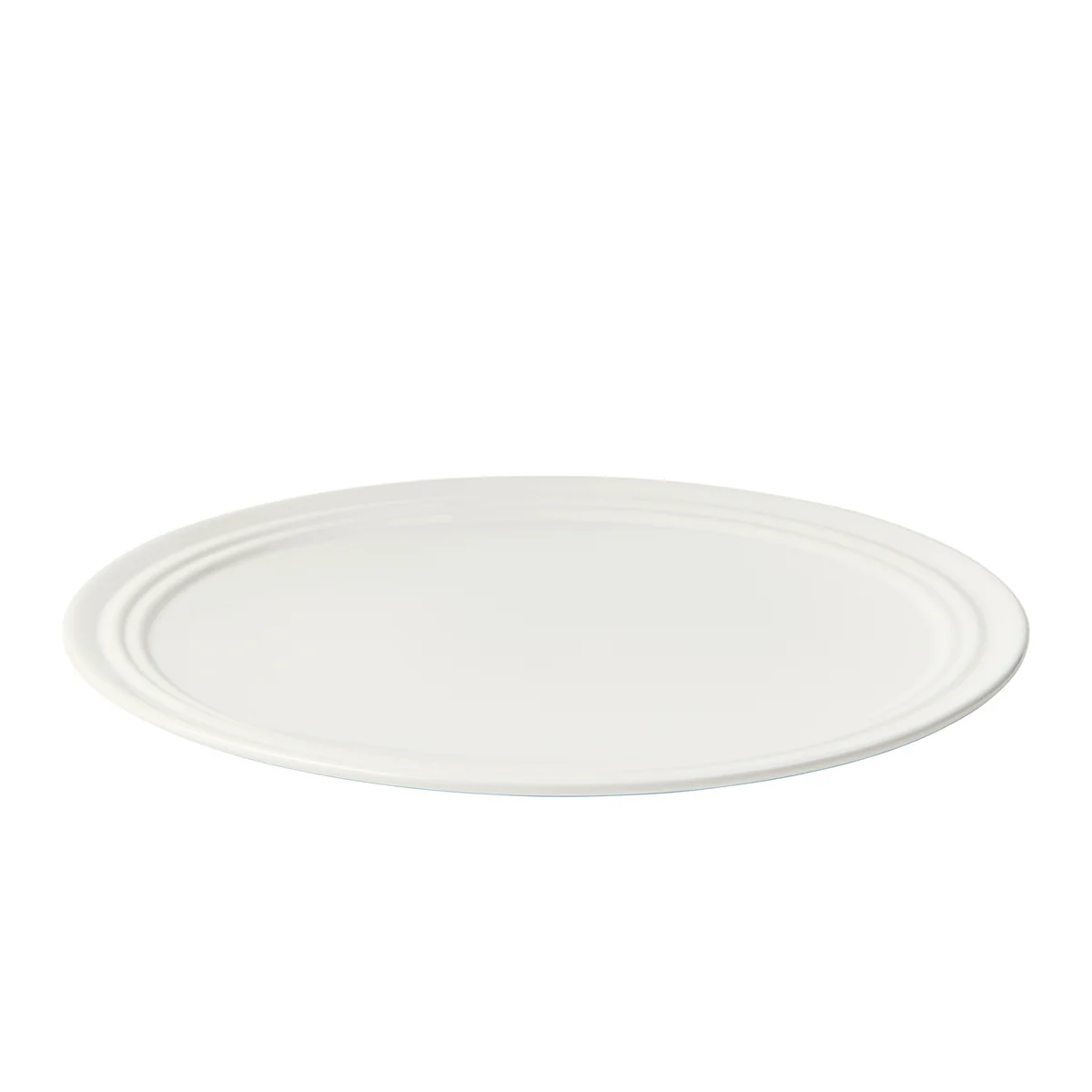 The collection, made from white stoneware and finished with a Chalk White glaze, adds an inviting touch to the table. Danish ceramist Julie Bonde designed this series, which artfully frames the plates with its two distinctive rings.