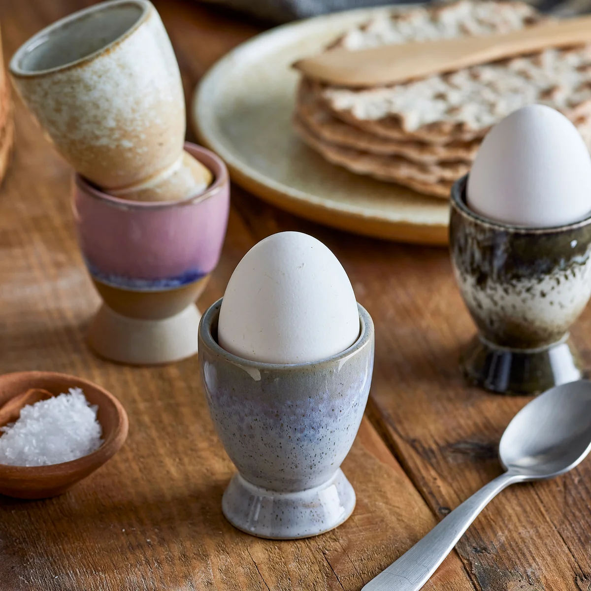 The Paula egg cup impresses with its rustic surface and harmonious combination of gray and white nuances. Made from high-quality stoneware, it adds a charming and stylish touch to the breakfast table. The special glaze makes each piece unique with individual color variations.