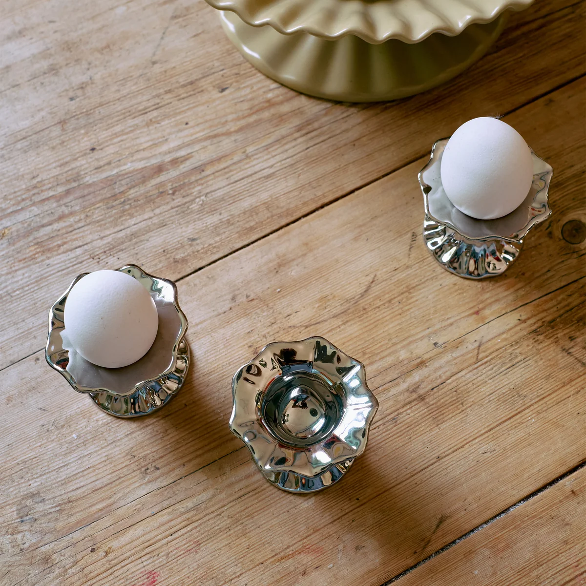 Classically shaped egg cups with a modern finish