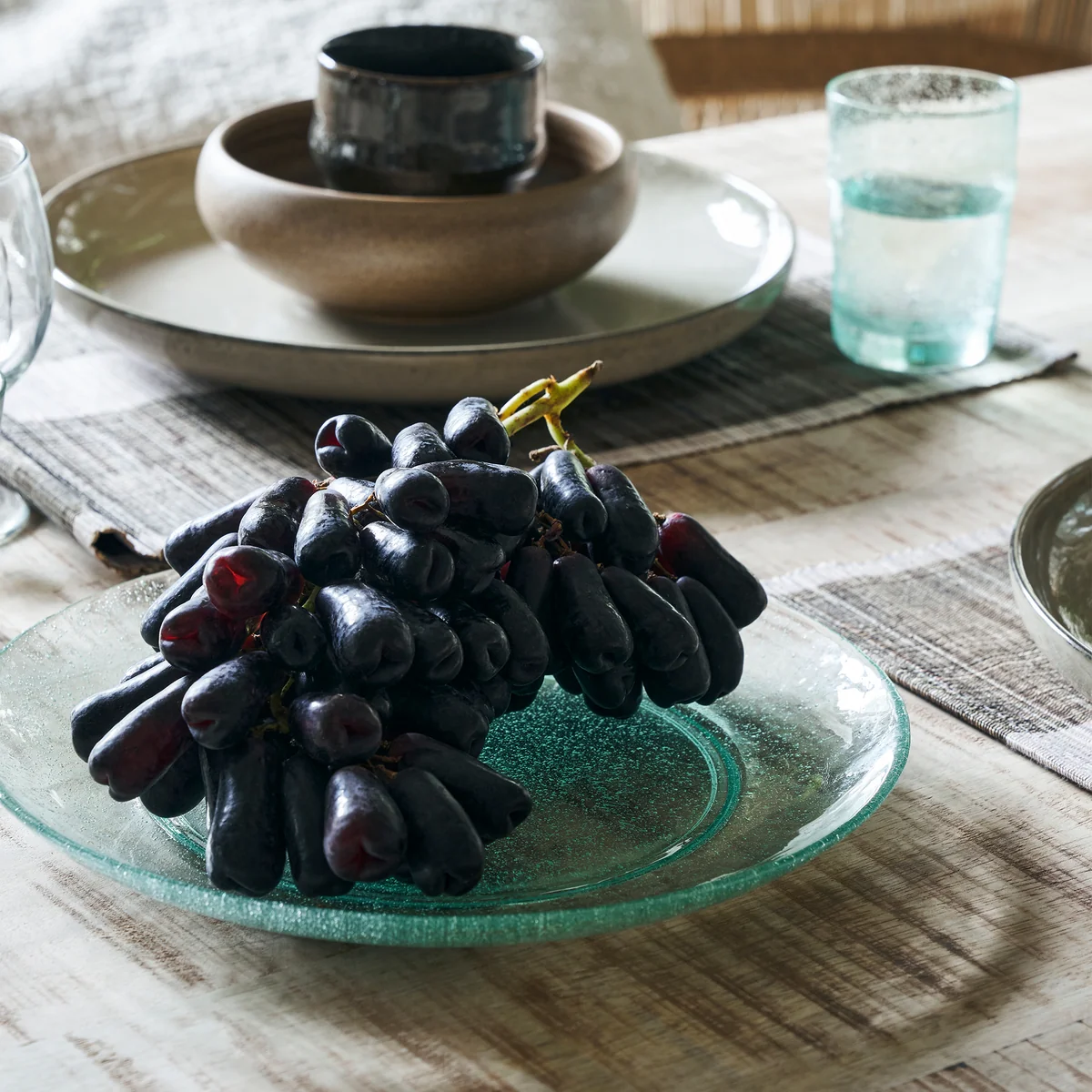The Rain Plates can be wonderfully combined with the eponymous drinking glasses and bowl . Suitable for cleaning in the dishwasher.