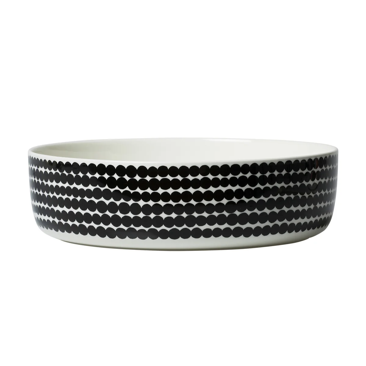 Oiva Räsymatto bowls are available in various capacities to present all kinds of things in an appealing way, from salads to potatoes to desserts. Marimekko manufactures the Oiva Räsymatto bowl from stoneware in different colours.