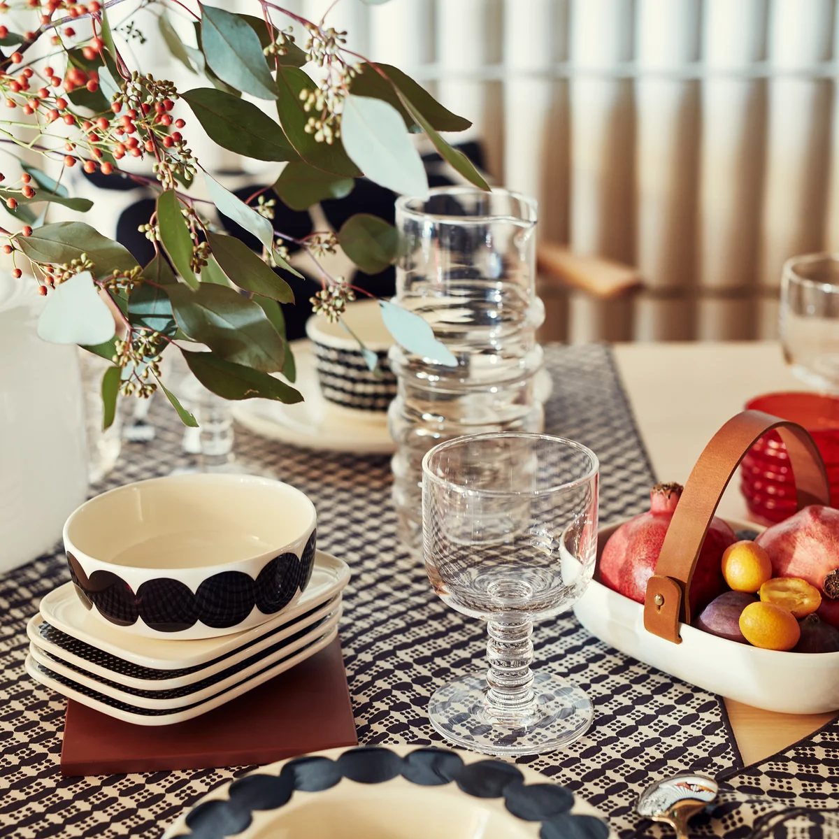 The creation of the Marimekko Oiva Räsymatto bowl is just as colourful: the iconic Räsymatto pattern comes from Maija Louekari, while Sami Ruotsalainen designed the shape of the Oiva serving bowl. That's why the bowl with the complicated name cuts a fine figure even without its contents.