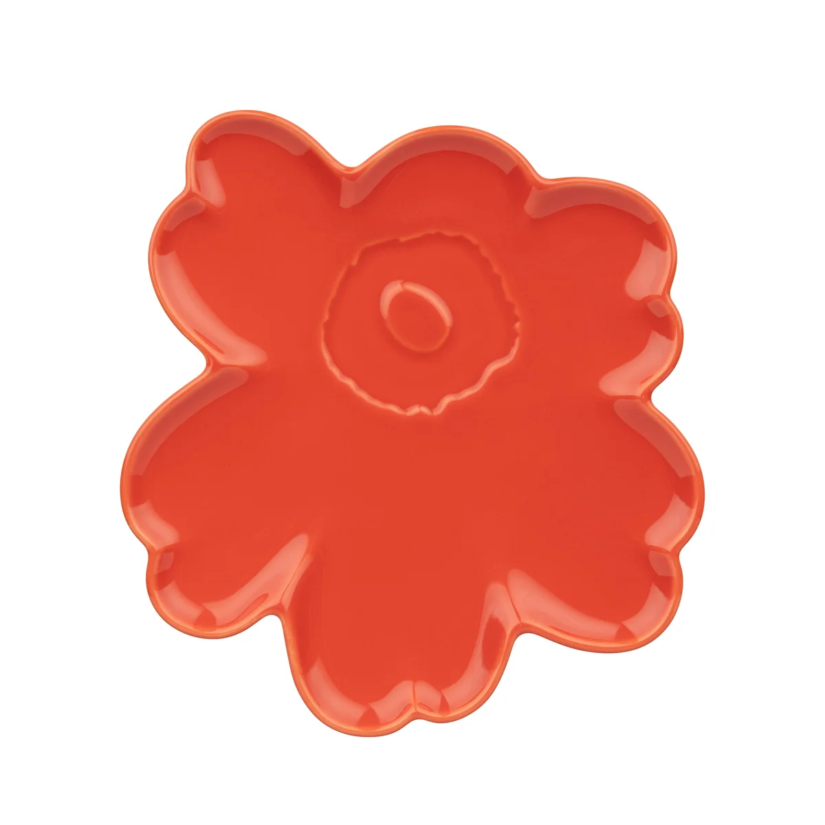 The Unikko plate from Marimekko is a charming homage to the brand's iconic floral pattern. Designed in a stylized flower shape, the plate brings playful elegance and timeless aesthetics to the table. Made from high-quality material, it is ideal for breakfast, snacks or desserts and adds a stylish accent to any table setting.