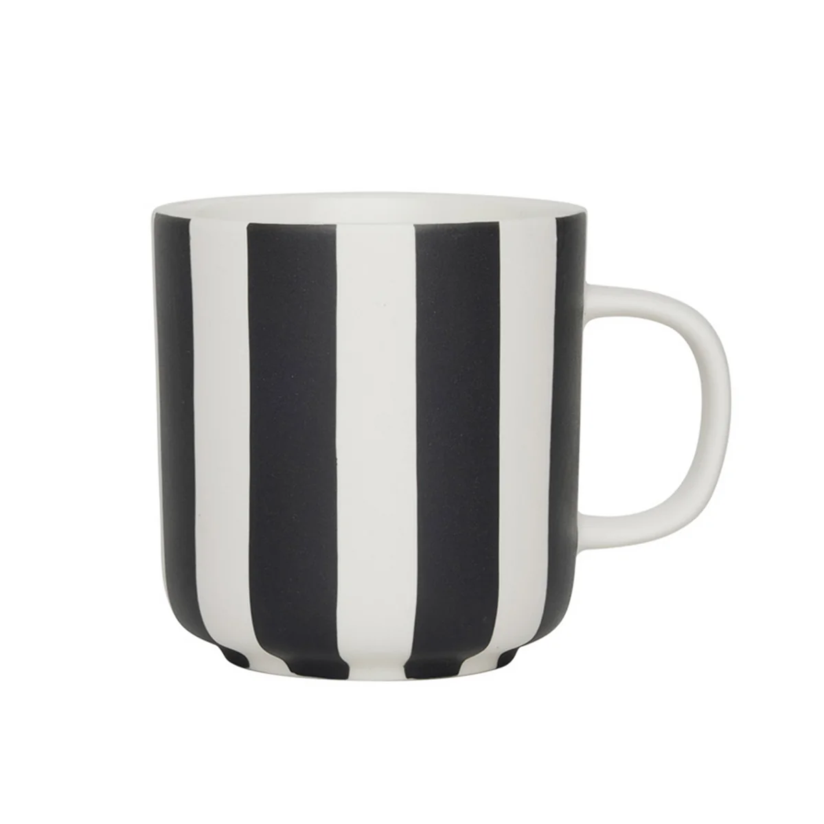 The simple shape of the mug is broken up in a unique way by the striking, hand-painted stripe pattern. The combination of clean lines and subtle accents gives the Toppu mug a timeless aesthetic that blends seamlessly into any kitchen style. The handle has been ergonomically designed to ensure the cup is comfortable to hold.
