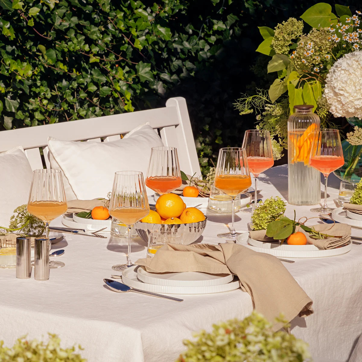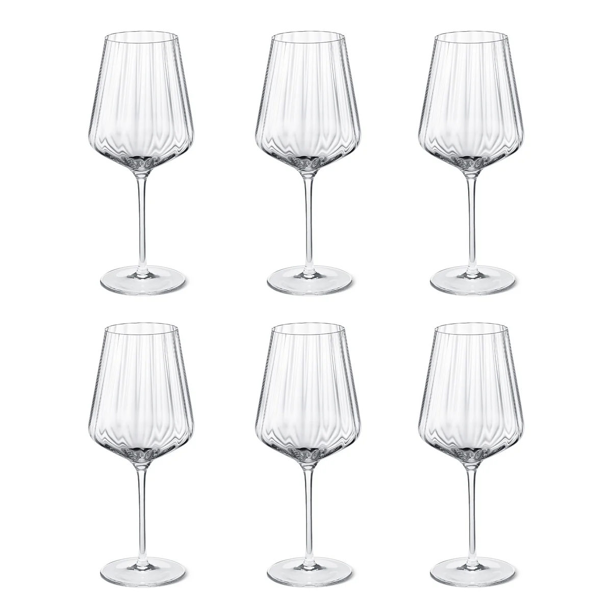 The Bernadotte White Wine Glass from Georg Jensen is a modern wine glass made of lead-free crystal. The glass inspires with its grooves à la Art Deco, which make the wine enjoyment more exclusive. Thanks to the visual advantages of the grooves, they allow the white wine glass to be gripped optimally, even with chilled wine. The Bernadotte Glasses (430 ml) are available in a set of 6.