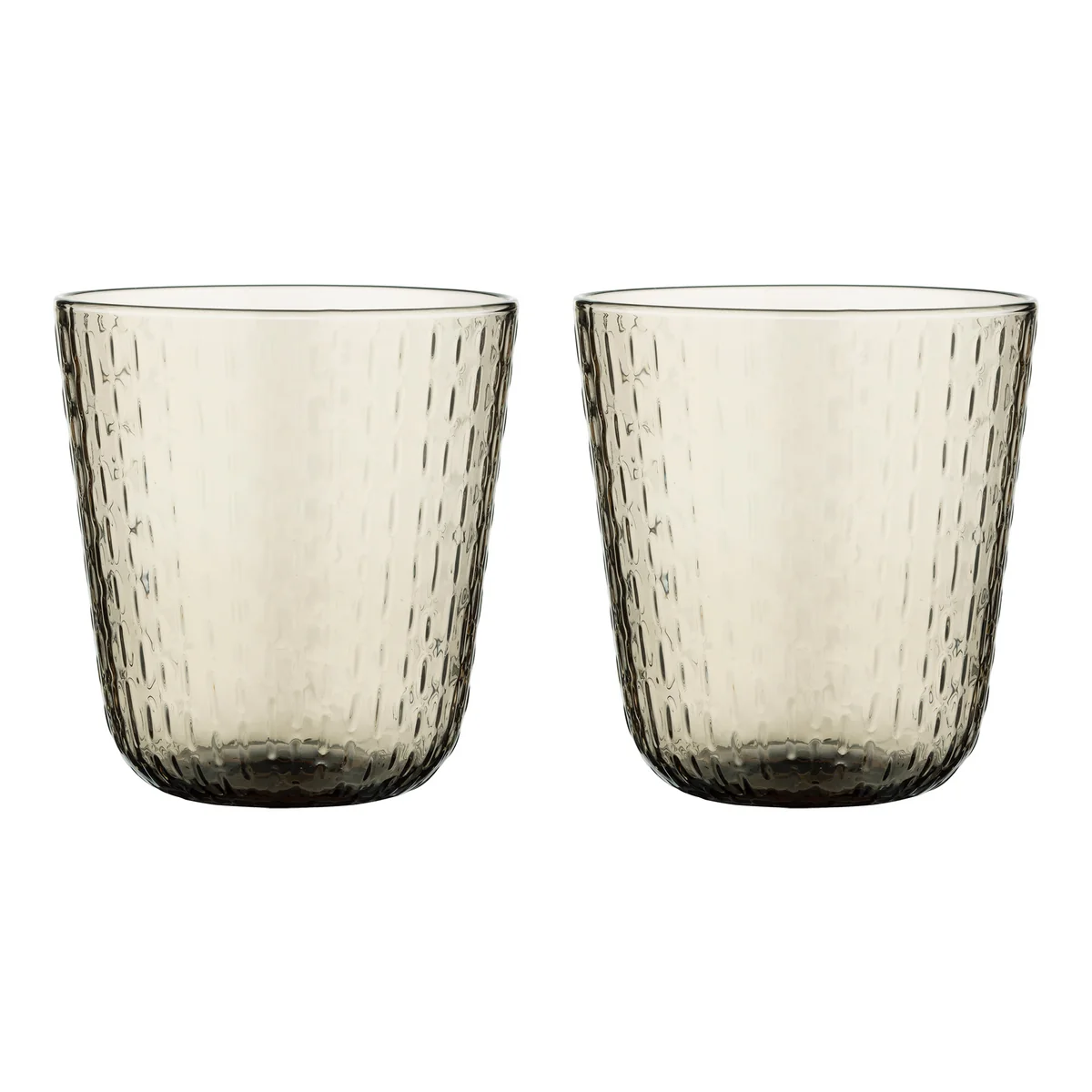 The Syksy drinking glass from Marimekko is made from mouth-blown glass. The Syksy (Autumn) glass series, designed by Matti Klenell, continues the exploration of nature and weather phenomena familiar in the art of printing Marimekko . The overarching theme of the new series is the forms of autumn rain, from a gentle drizzle to powerful, penetrating showers.