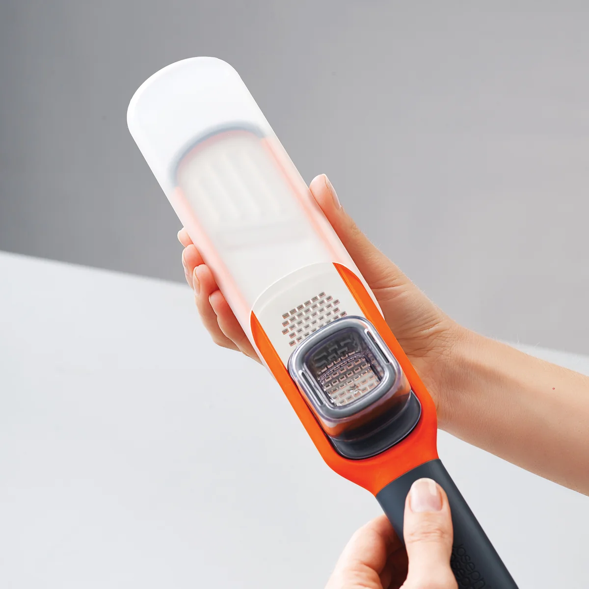 Grating small ingredients can sometimes be a bit tricky and if you do it by hand, finger injuries are not uncommon. To avoid this, the 2-in-1 Handi-Grate mini grater and slicer by Joseph Joseph has been developed.