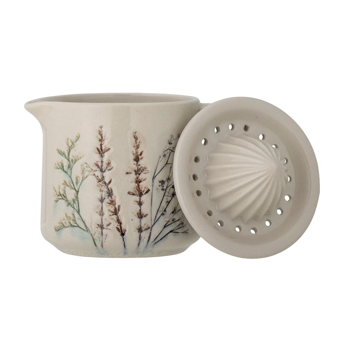 The lemon juicer from Bloomingville is a beautiful stoneware juicer in natural colors, with a delicate floral motif on the glaze. The juicer is handmade and therefore each piece is unique. Dishwasher safe.