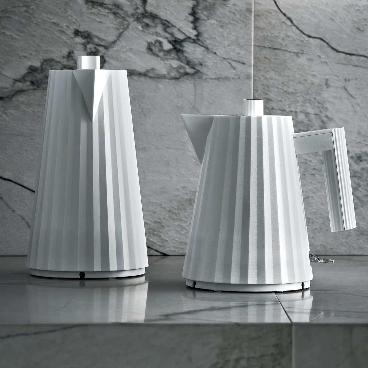 Made of thermoplastic resin, the 1.7 litre capacity plissé kettle is reminiscent of a dress created by a fashion designer. In different colours it becomes a decorative object on the worktop and a functional eye-catcher in every kitchen.