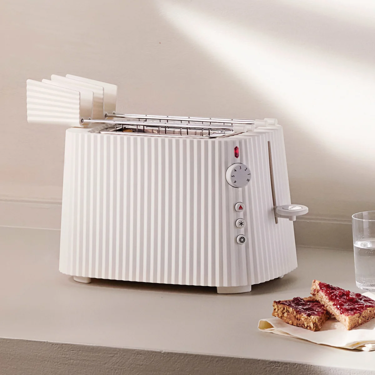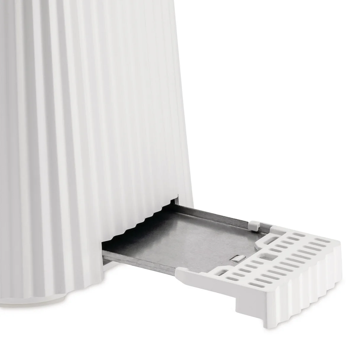 The toaster from the Alessi collection Plissé collection impresses with its high functionality and unique look. Thanks to six browning levels and the integrated stop, defrost and reheat function, every slice of toast becomes an individual delight. The bagel function, on the other hand, only heats one side of the toast. In addition, the base of the appliance is non-slip and the pull-out crumb tray makes cleaning easier. To prevent tangled cables, the integrated cable can be wrapped around the lower base of the toaster.