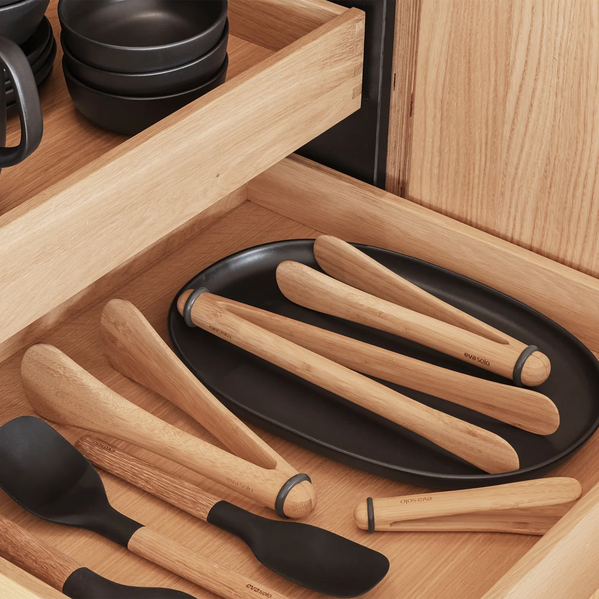 The Nordic Kitchen tongs from Eva Solo impress with their versatility. The stylish tongs made of FSC-certified bamboo can be ideally used to grab salads or pasta dishes. It can be hung - depending on your preference - or stored in a drawer. The tongs are available in different variants.