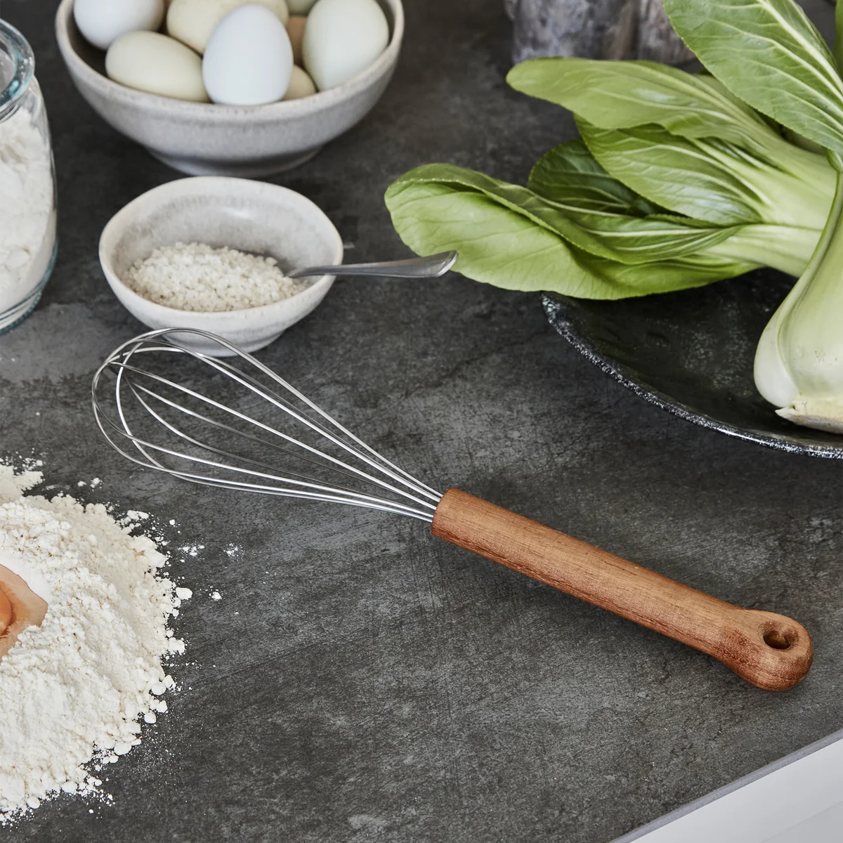 The Eya whisk combines a stylish design with practical functionality. With a handle made of high-quality acacia wood and robust stainless steel, it is perfect for mixing and whisking in the kitchen.