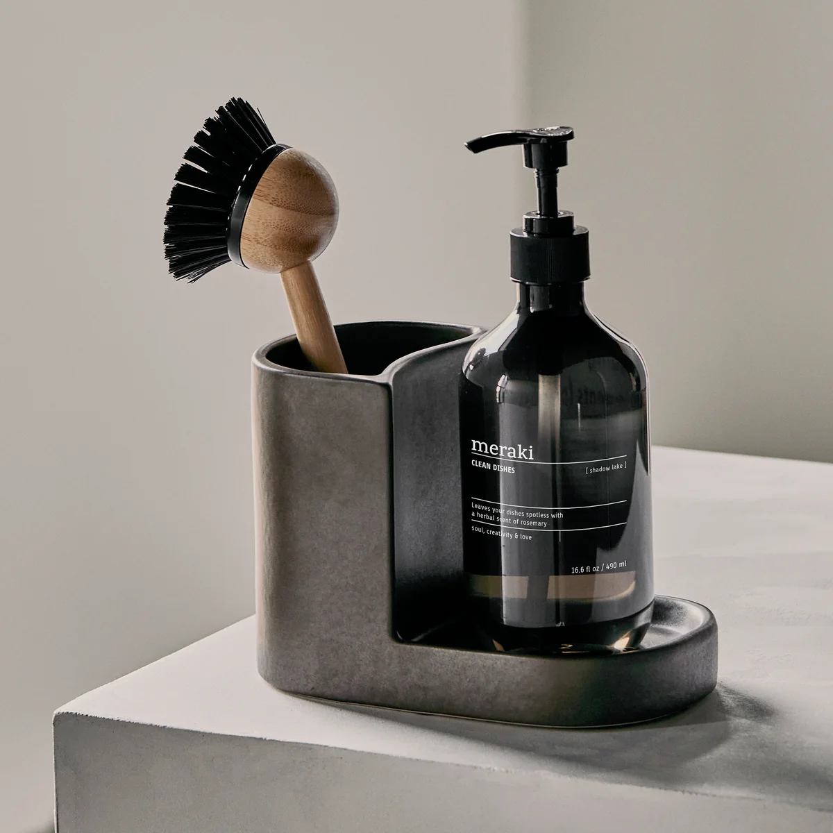 With the timeless and minimalist Datura organizer for washing-up liquid and dishwashing brush from Meraki , you can create an attractive place to keep things tidy. Instead of leaving washing-up utensils lying around untidily on the kitchen counter, they can now be neatly organized. This makes it easier to wipe down the worktop and creates a stylish, tidy sink area. The sink organizer is made of stoneware and has a subtle grey glaze that creates a natural and calm atmosphere in the kitchen.