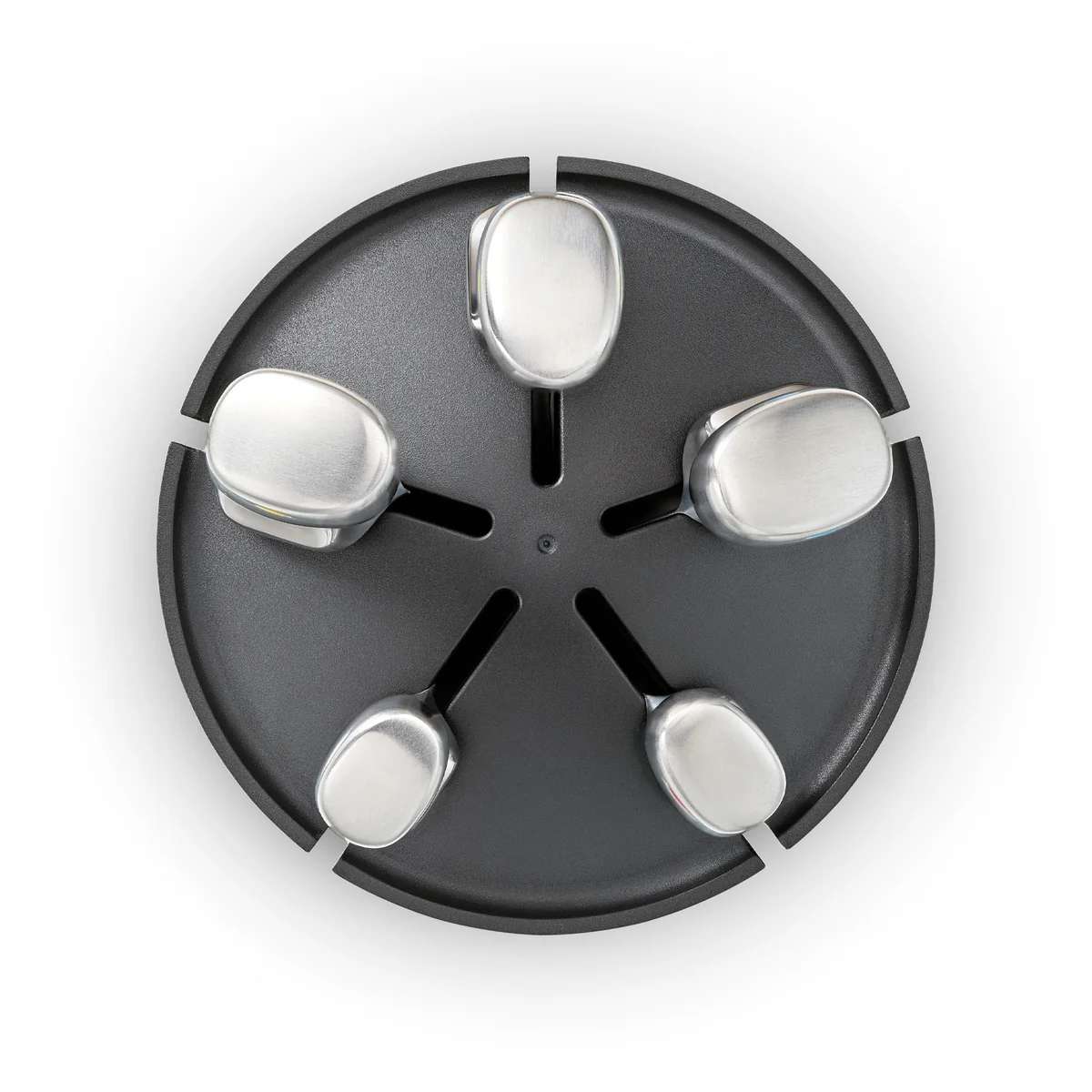 For more flexibility and fast action provides the Elevate knife carousel. The 5-piece knife set with rotating knife block takes up little space in the kitchen and keeps all the knives immediately at hand.