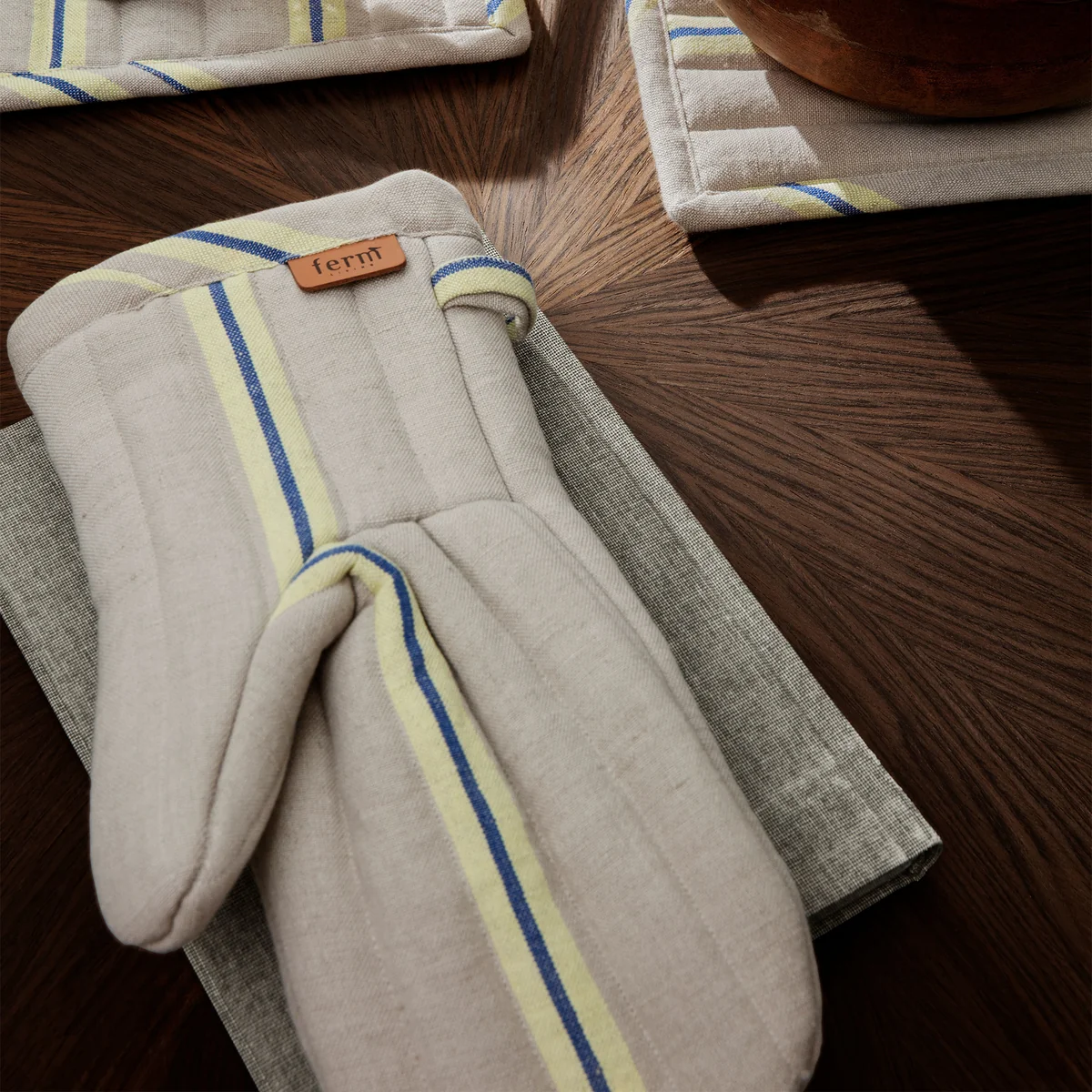 The oven gloves are made from a heat-resistant blend of cotton and natural linen. They are available in different colors and patterns. In combination with theHale kitchen and theHale potholders create a chic and uniform overall picture.