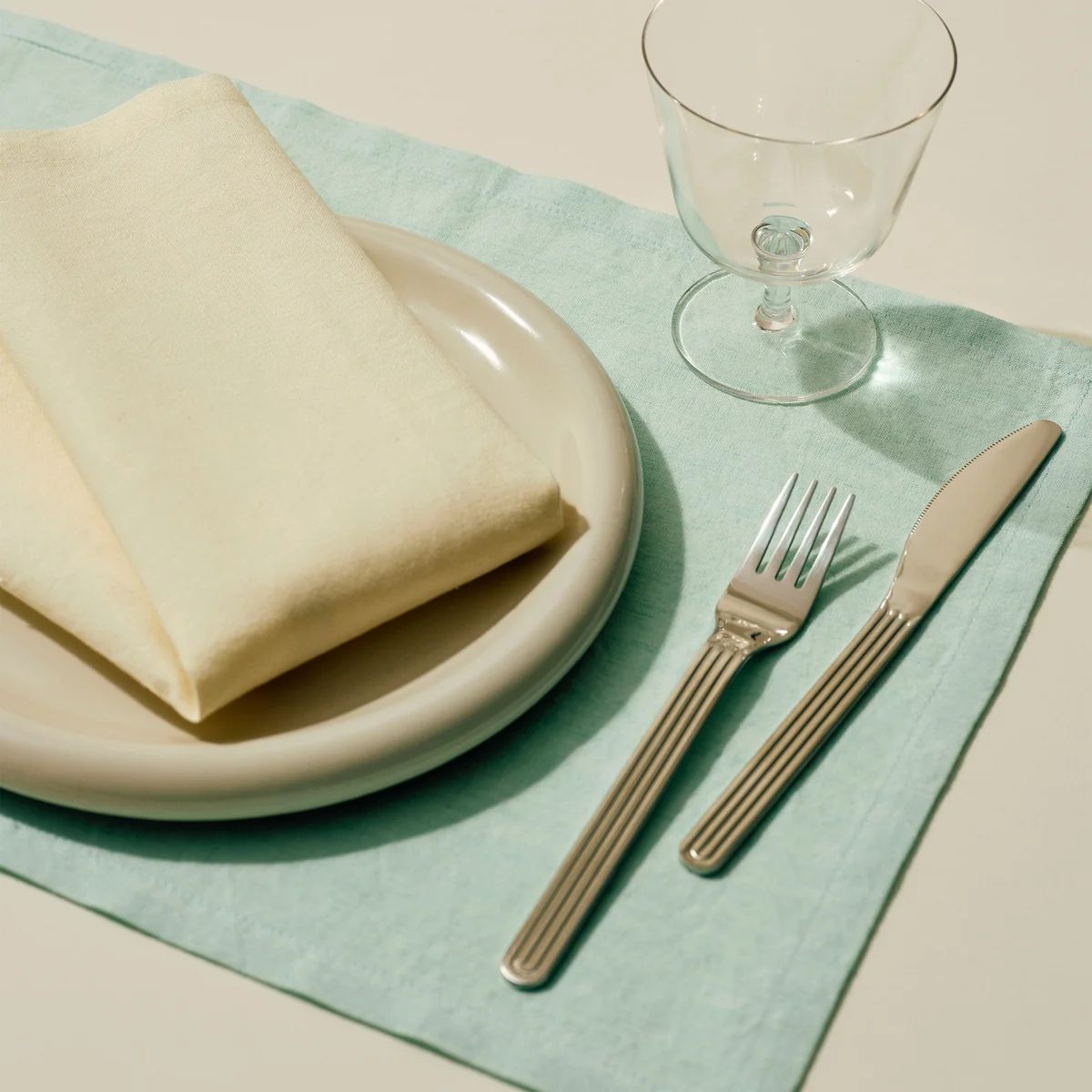The Tavolo napkin from HAY is designed to be used flexibly as both a napkin and a placemat. Made from a soft blend of organic cotton and linen, they reliably protect the table and clothing while bringing a warm, inviting atmosphere to the dining table. The soft sun-bleached tones and slightly rustic texture make them a timeless accessory - ideal for everyday use or special occasions.