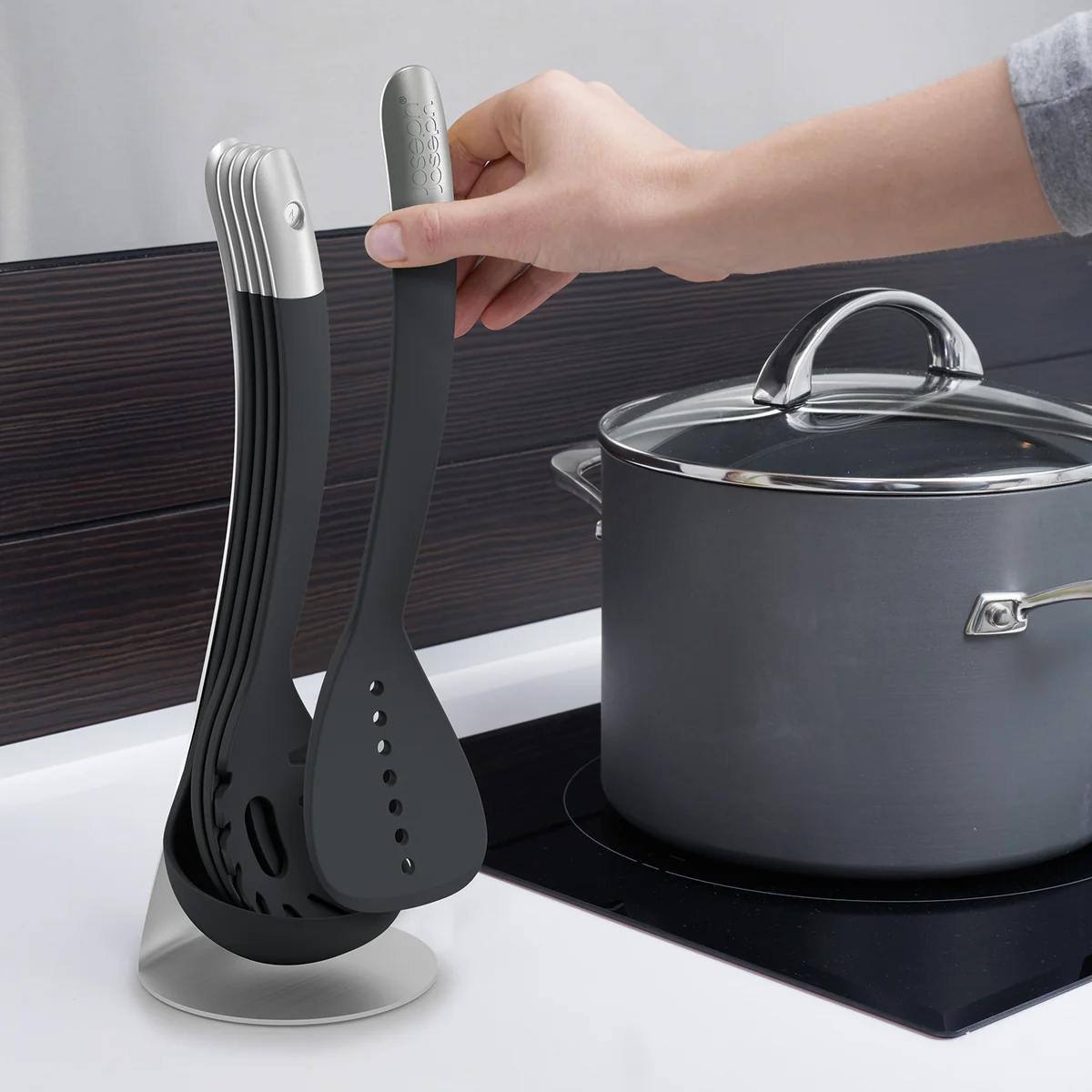Joseph Joseph recombined five essential tools that shouldn’t be missing in any kitchen with the kitchen tools set. The set is the ultimate space saving, practical and innovative combination, transforming coking into a very new experience.