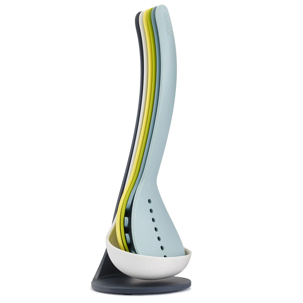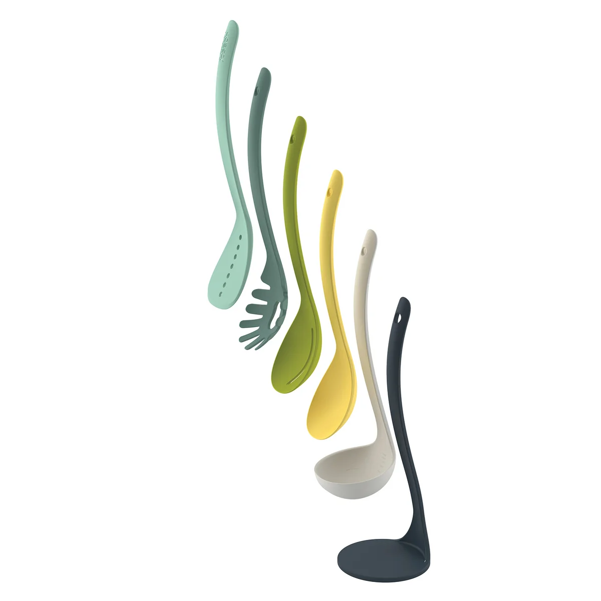 The Nest kitchen utensils are a useful extension of the Nest Collection by Joseph Joseph. It is self-evident that the design perfectly suits in the series. Five important kitchen utensils are included in the Nest kitchen tool set: Slotted Spatula, Spaghetti Server, Slotted Spoon, Solid Spoon and a Ladle.