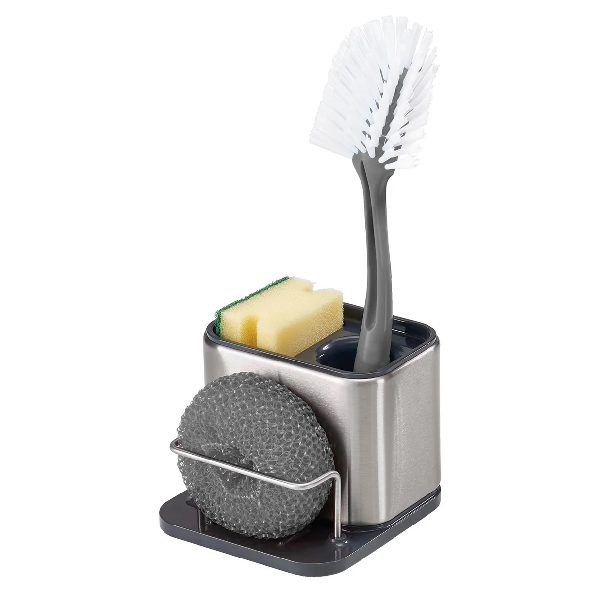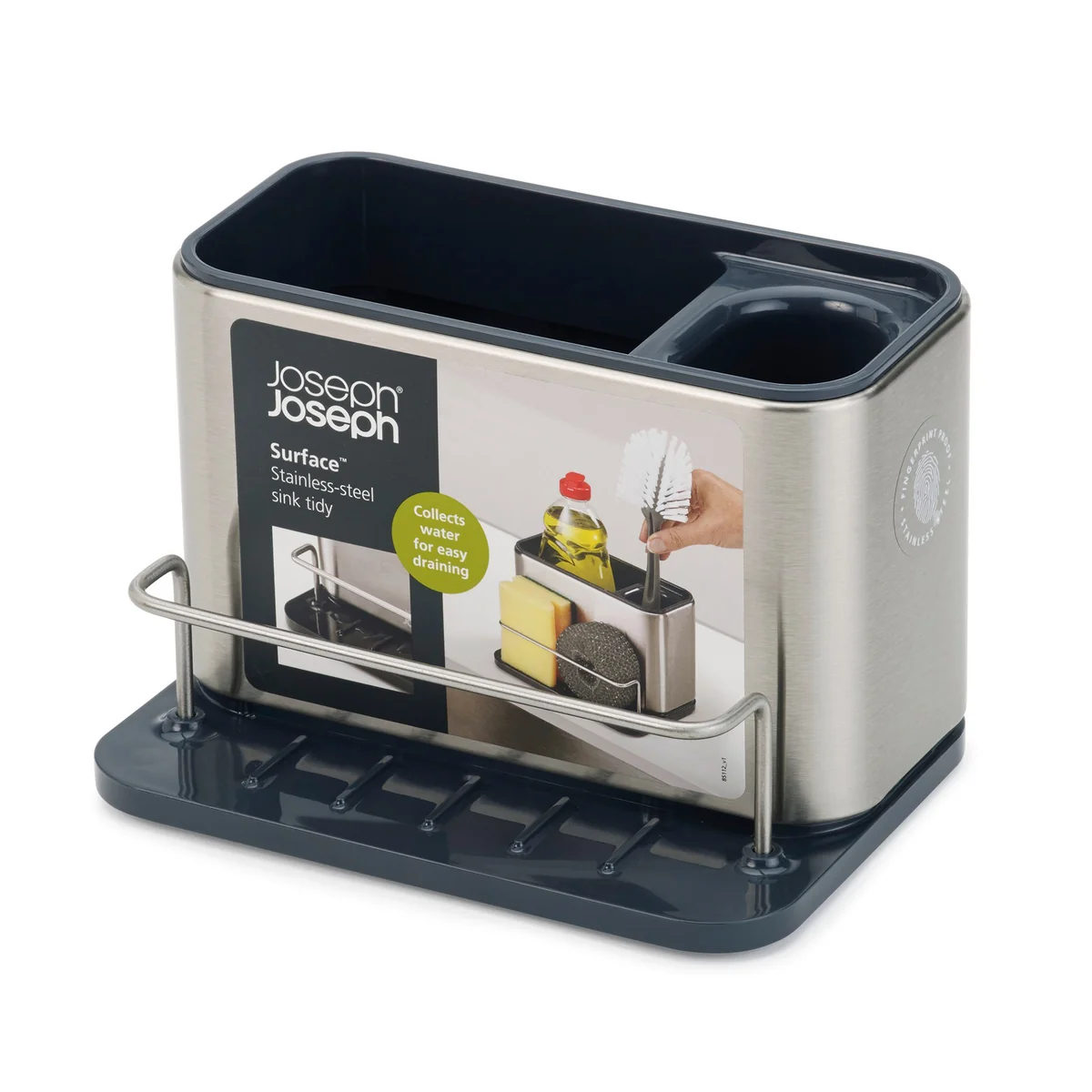 The Surface Sink Caddy by Joseph Joseph helps organize your dish-washing accessories in a stylish way. It belongs to the stainless steel cleaning and organisation collection called Surface.