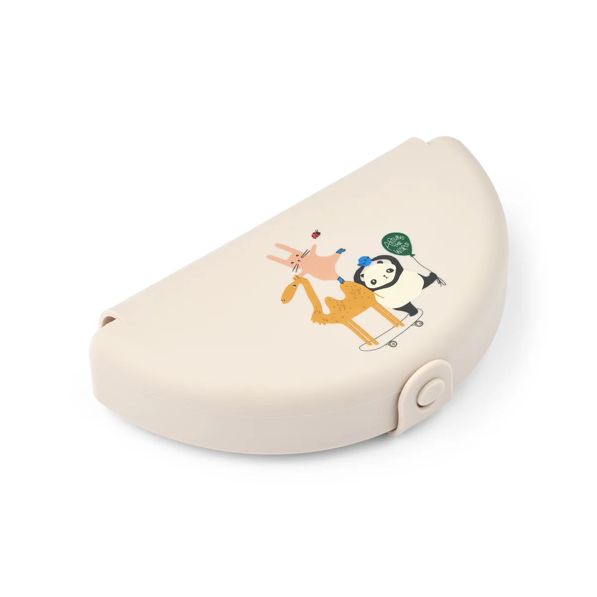 The Eugene snack box from LIEWOOD is the ideal companion for on the go - functional, space-saving and very easy to use. Made from 100% durable silicone, it can be easily folded up after use and fits effortlessly into any bag. A practical divider ensures that different snacks or foods remain separate, while the secure closure prevents leakage. Perfect for kindergarten, outings or everyday use.