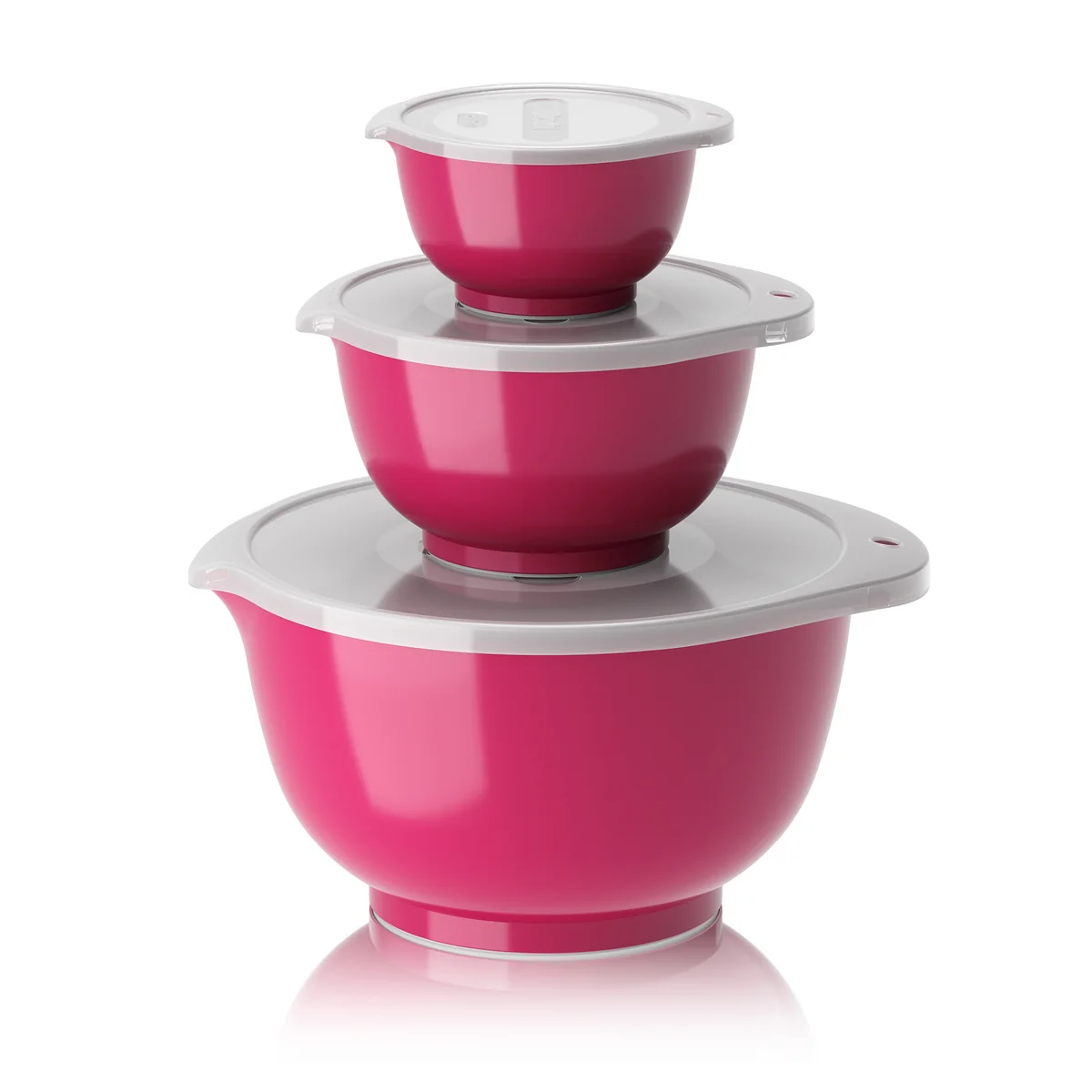 The Margrethe mixing bowl set from Rosti consists of several mixing bowls, each with matching lids, which can be stacked inside each other. They are made of BPA-free melamine, a high-quality plastic that is stable, lightweight, scratch-resistant and heat-resistant. The bowls can also be used in the dishwasher without hesitation.