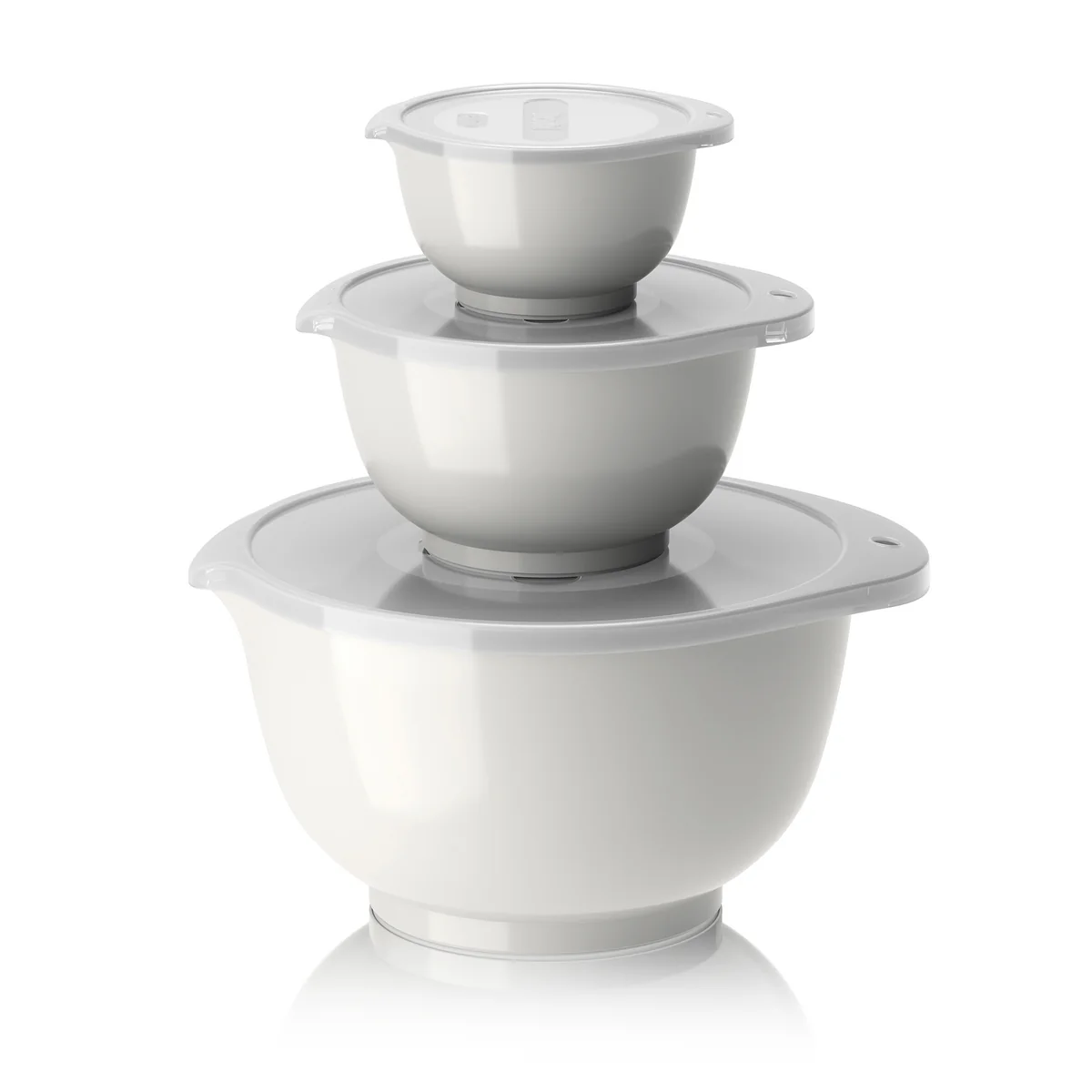 The Margrethe mixing bowl set from Rosti consists of several mixing bowls, each with matching lids, which can be stacked inside each other. They are made of BPA-free melamine, a high-quality plastic that is stable, lightweight, scratch-resistant and heat-resistant. The bowls can also be used in the dishwasher without hesitation.