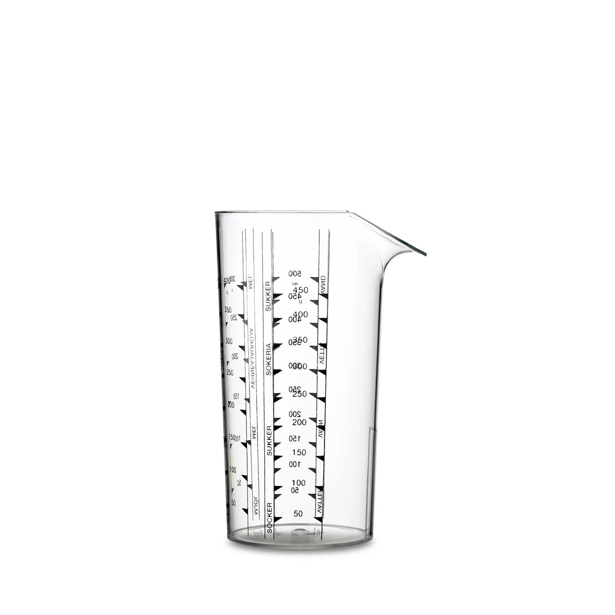 The transparent material SAN ensures that the contents of the measuring cups can be easily matched to the outer measuring scale.