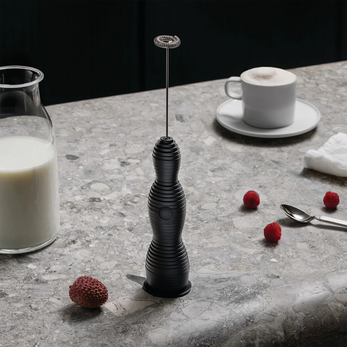 The Pulcina milk frother from Alessi convinces with a geometric design with slight curvatures that give it a certain handiness and functionality.