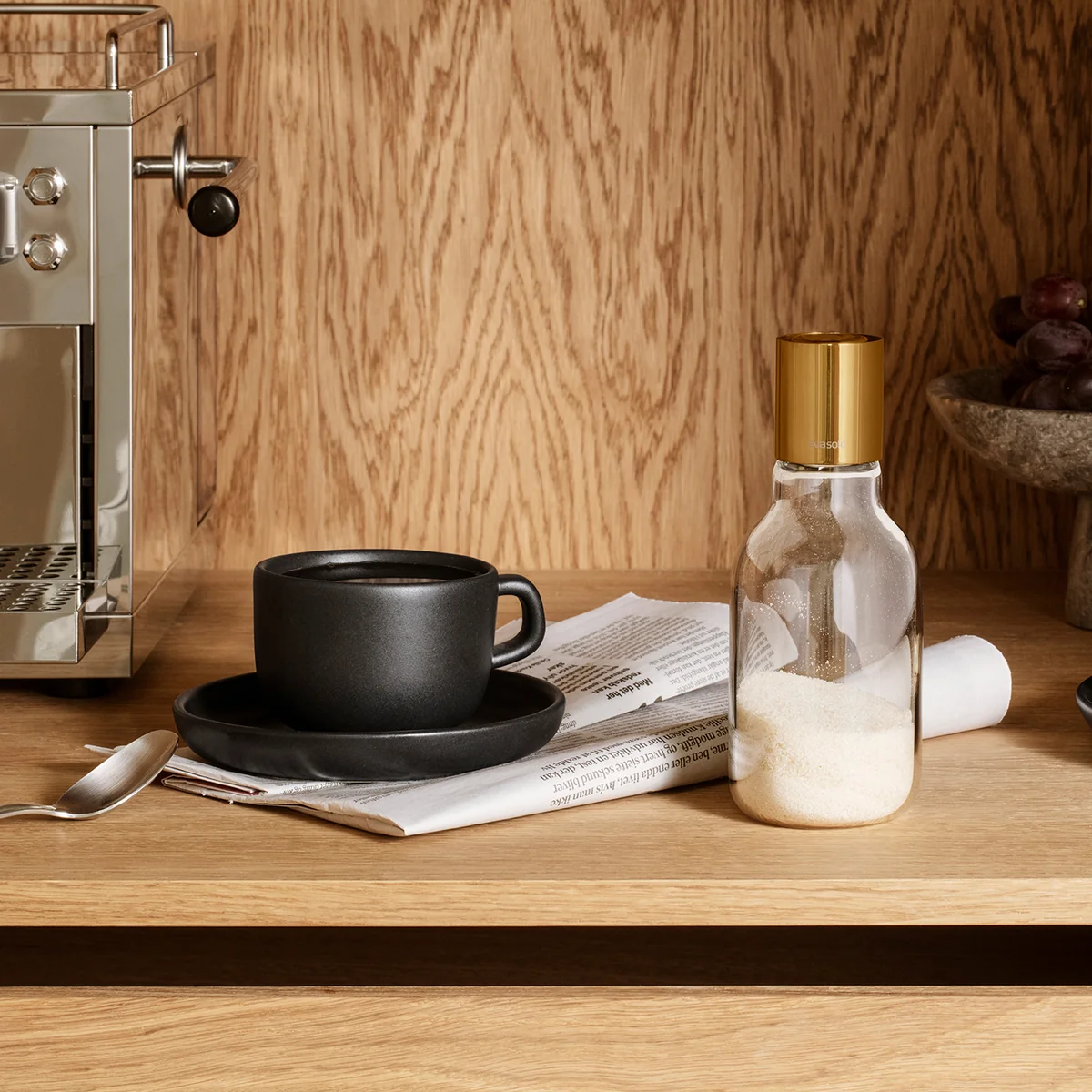 The sugar dispenser from the Danish manufacturer Eva Solo is a hygienic and extremely modern version of the classic sugar bowl. The small, elegant dispenser fits comfortably in the hand. Quite simply turn the head of the sugar dispenser and choose a teaspoon for portioning or use it directly for sprinkling. It can be easily cleaned in the dishwasher. Made of glass and stainless steel.