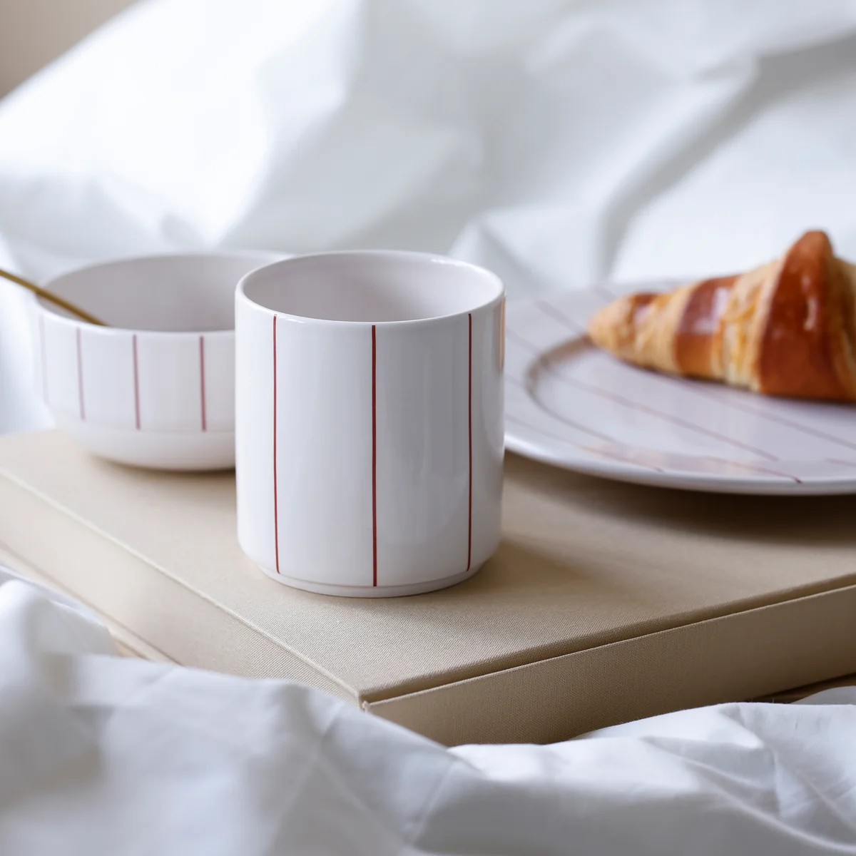 The pyjama mug from Design Letters . Snacks and pyjamas are a perfect combination, and now you can dress up both yourself and your favorite foods in a stylish pyjama outfit. The Pyjamas Collection is the ideal choice for breakfast, evening snacks or morning coffee. With its delicate stripes, it looks fantastic on the table and adds charm to the kitchen shelf.