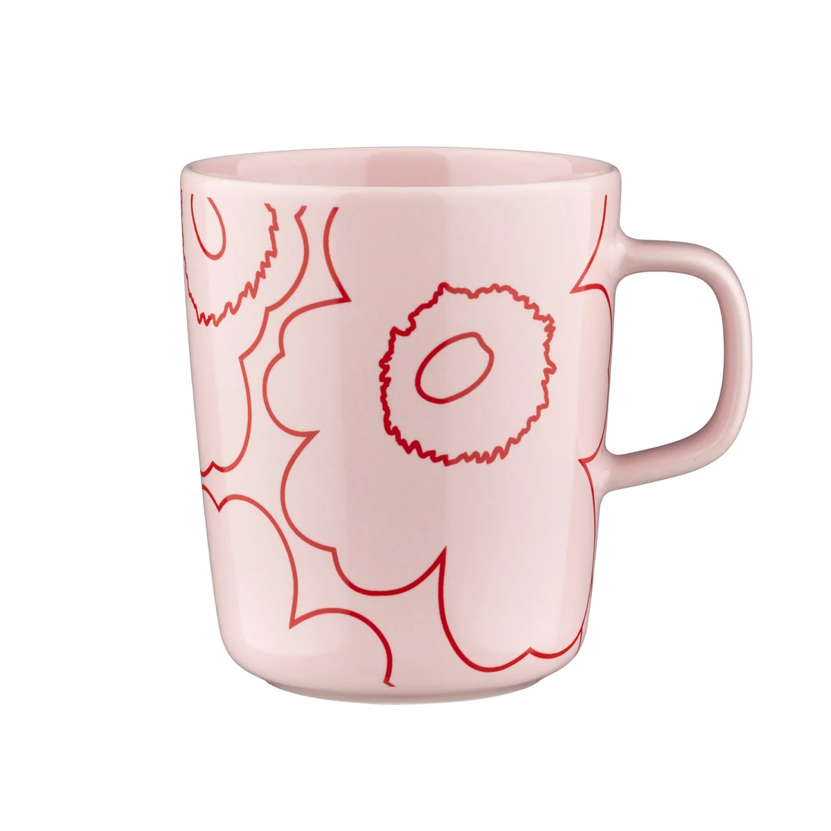 The Oiva Piirto Unikko mug with handle from Marimekko is made of white stoneware and can be used in the dishwasher, oven, microwave and freezer.