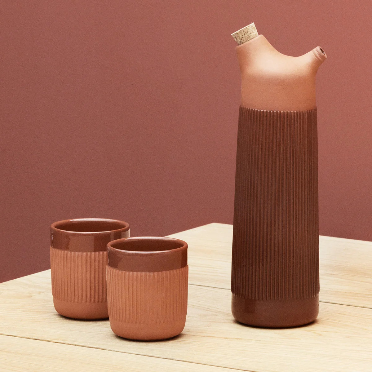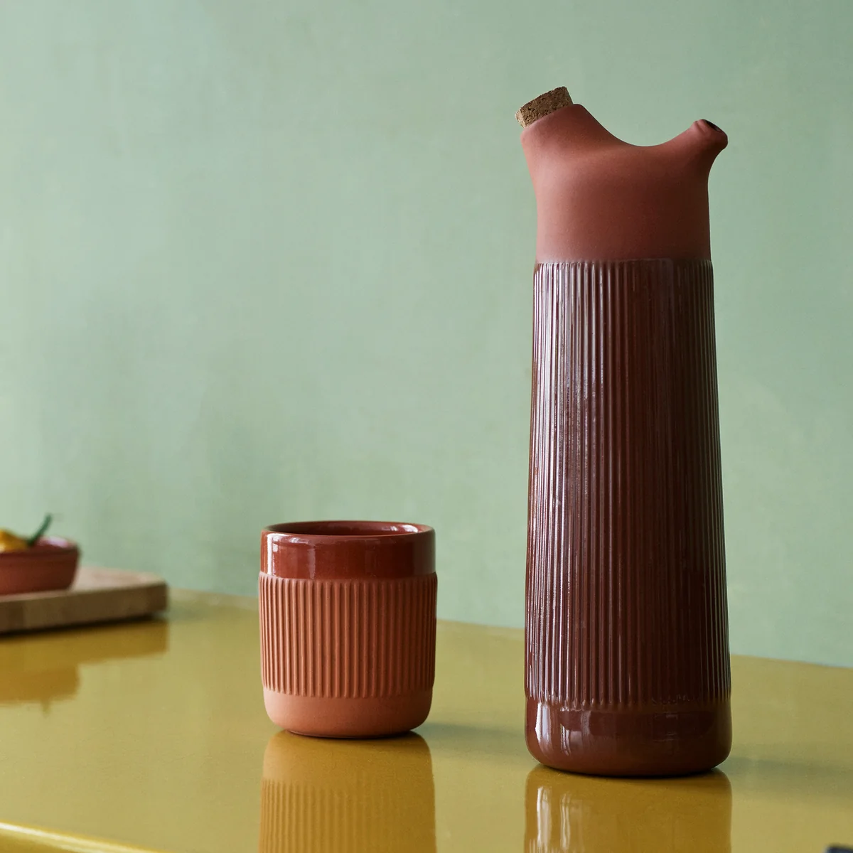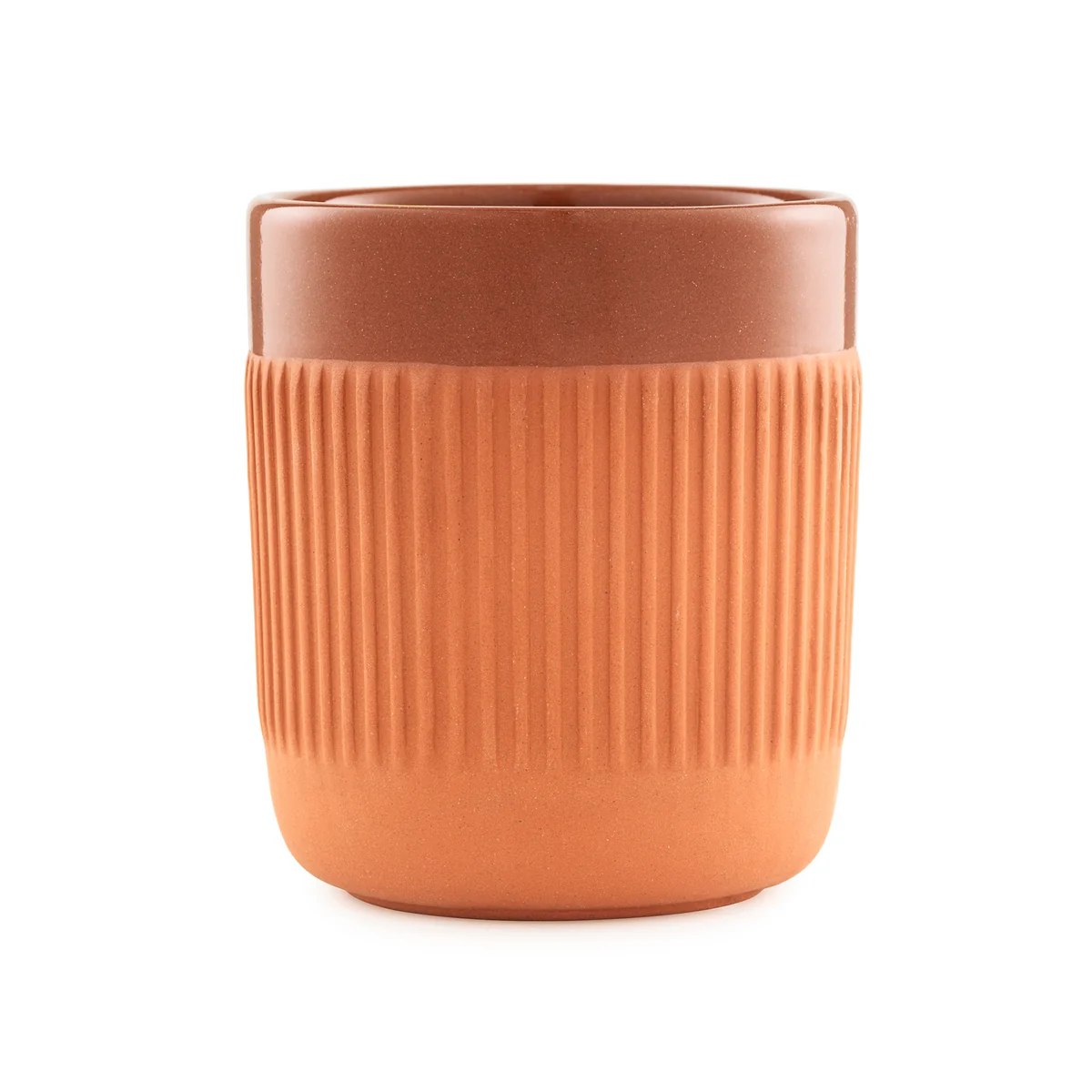 Designed by Simon Legald, the mug's design is taut yet gentle, with a friendly, handcrafted look highlighted by the rustic fired terracotta. These hues bring a touch of Mediterranean warmth to the dining table.