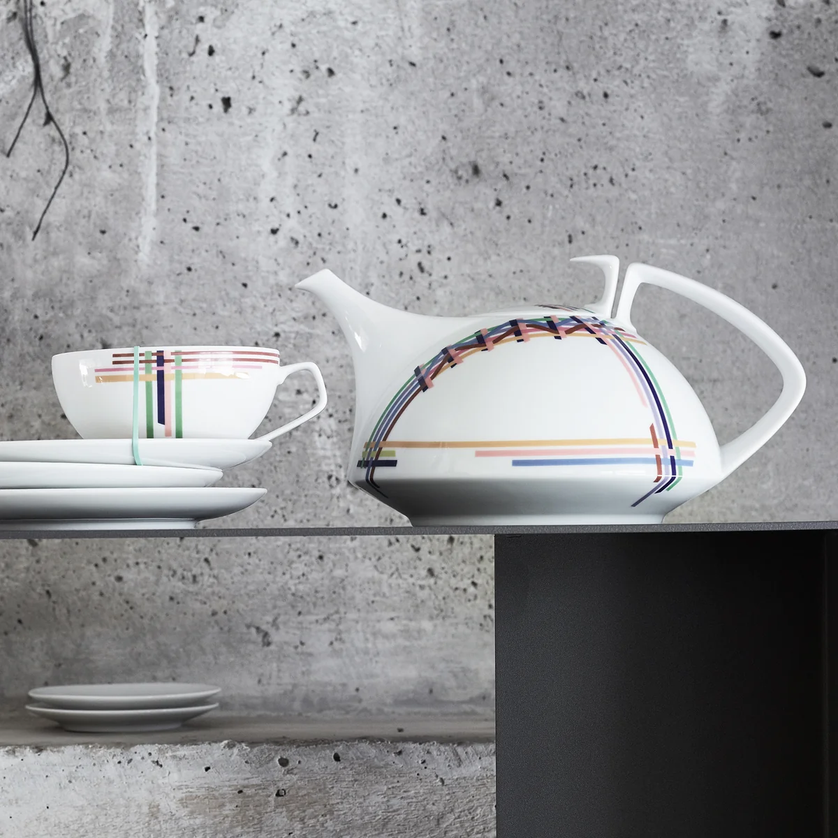 In addition to the classic white cups, Rosental will be taking up the Stripes decor, also designed by Gropius, on the occasion of the 100th anniversary of the Bauhaus. Originally conceived with stripes on white porcelain, Rosenthal is now launching a black porcelain with a white decor on the market.