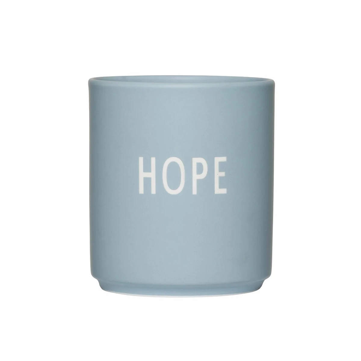 The AJ Favourite porcelain mugs from Design Letters are the perfect addition to the series of porcelain mugs with numbers and letters. In different colors and with the typical Arne Jacobsen typography, they are a great addition to the Design Letters mugs and impress with their different inscriptions and colors.