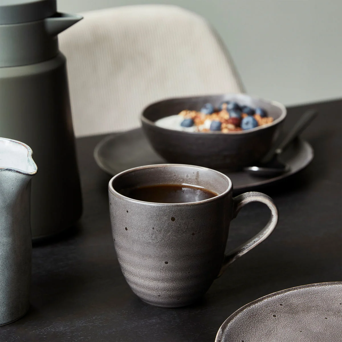 Start your day in a rustic way with the Rustic mug from House Doctor . Whether for coffee, tea or hot chocolate, in combination or as a single favourite cup, the design piece brings a personal atmosphere into every home. The glazed stoneware that the cup is made of is also handmade, ensuring unique patterns on each product.