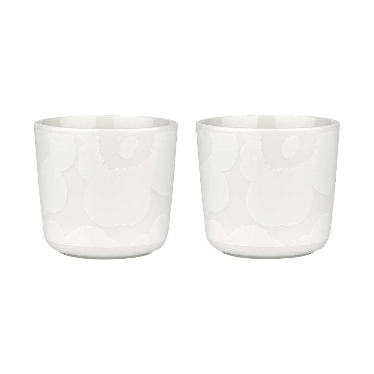 The Oiva Unikko mug without handle from Marimekko is decorated with the famous floral pattern by Maija Isola. Unikko, which means "poppy" in German, is the best known and most widely used pattern by the traditional Finnish manufacturer Marimekko .