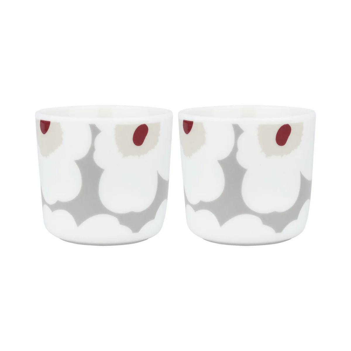 The Oiva Unikko mug without handle from Marimekko is decorated with the famous floral pattern by Maija Isola. Unikko, which means "poppy" in German, is the best known and most widely used pattern by the traditional Finnish manufacturer Marimekko .