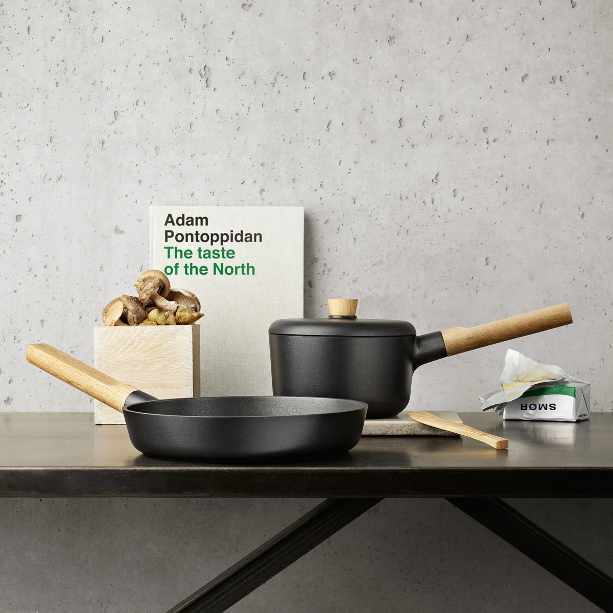 But the pans from the Nordic Kitchen collection by Eva Solo are not only visually appealing: suitable for all types of stoves, including induction, the frying pans with wooden handles and non-stick coating are a must for every hobby cook.