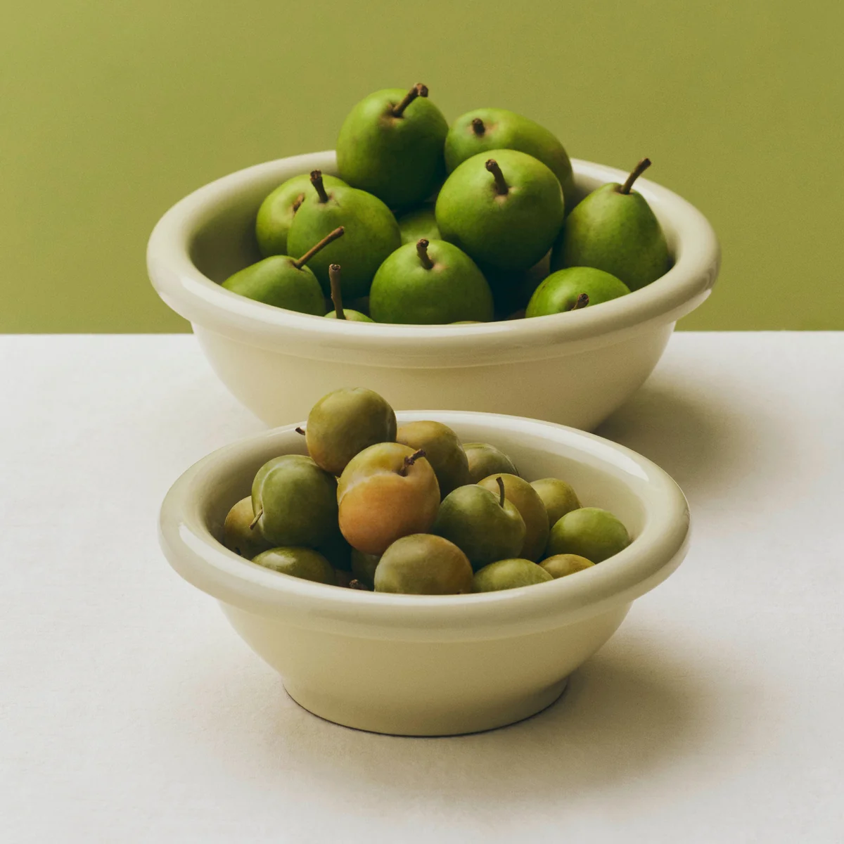 The rolled edge, the soft feel and the well-proportioned design of the salad bowl contribute to both its visual and tactile appeal. Made in Portugal from hard-wearing terracotta, the bowl is available in two sizes and comes with a choice of a natural or high-gloss colored glaze and a hand-painted stripe detail.