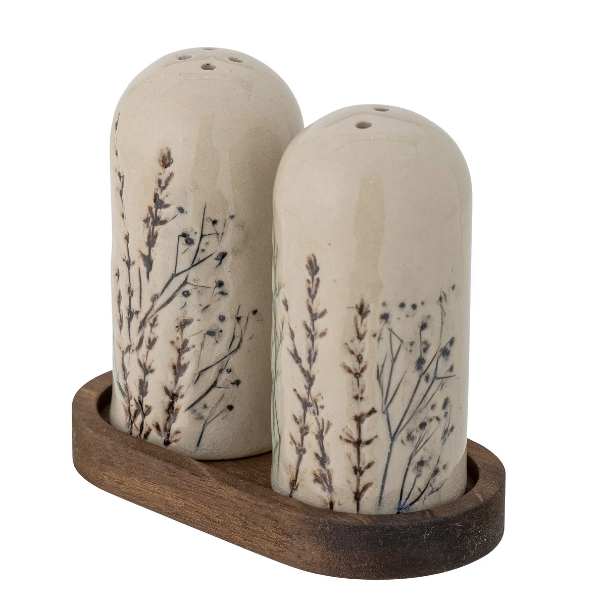 The Bea Salt & Pepper Shaker Set from Bloomingville is perfect for the table. The set stands on a small tray made of acacia wood. The salt and pepper shakers are made of stoneware.